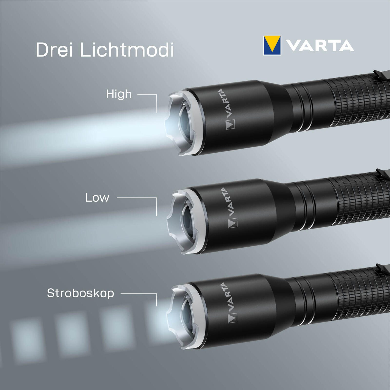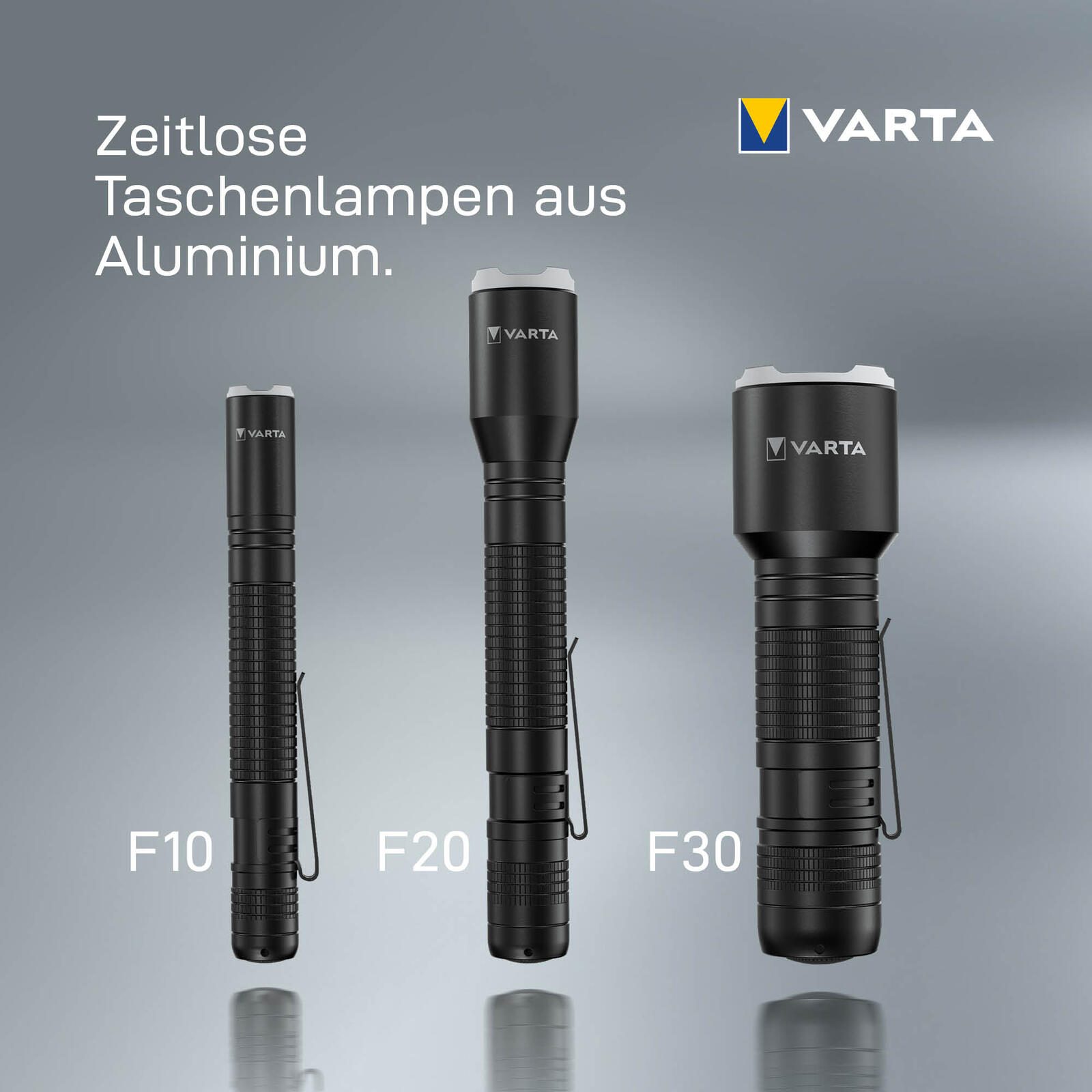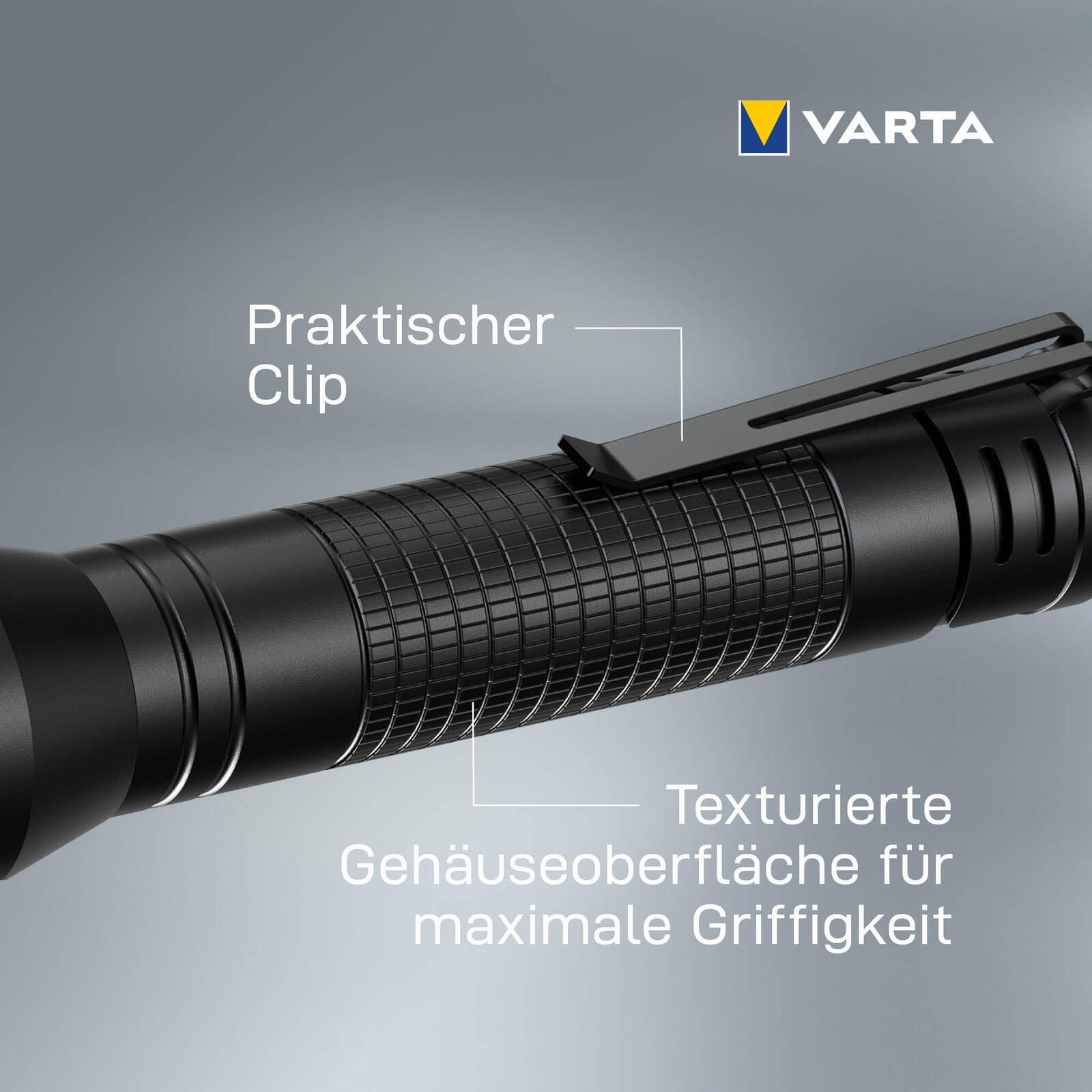 - Lieferumfang: VARTA Aluminium Light F20 Pro mit Taschenclip inkl. 2x VARTA Longlife Power AA Batterien