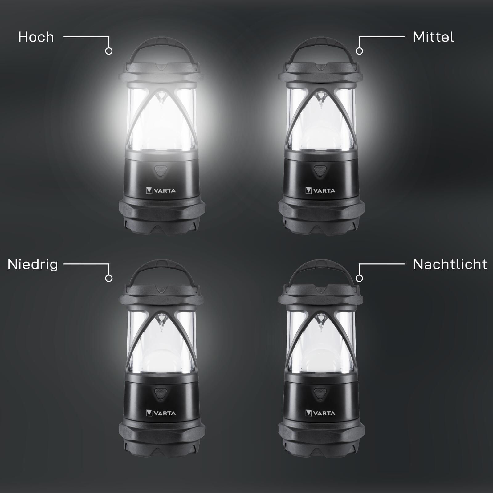 - Die COB-LED mit 4 Leuchtstufen überzeugt sowohl im Innen- als auch Außenbereich.