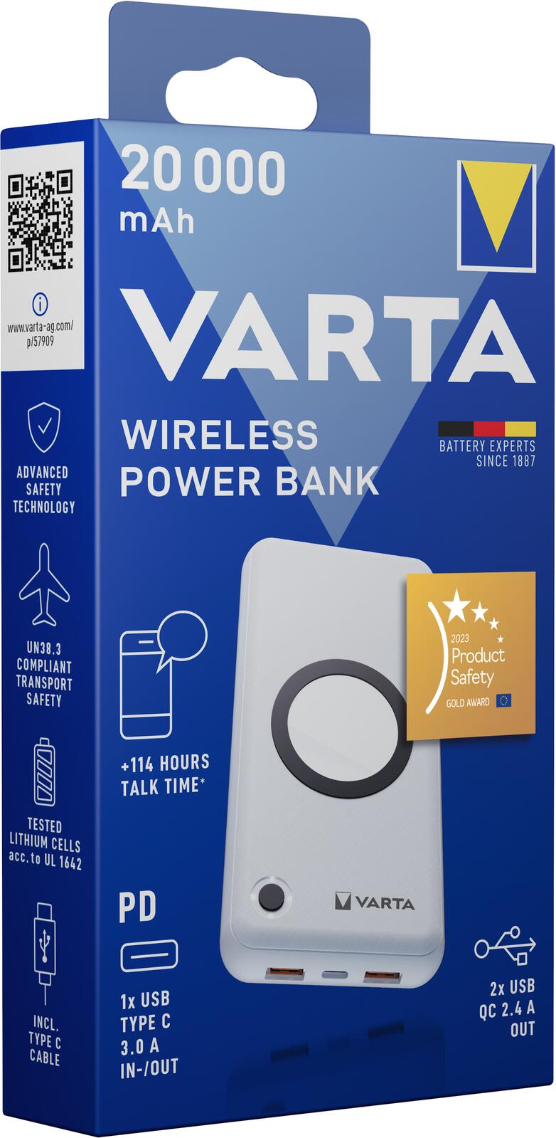 - Lieferumfang: 1x VARTA Wireless Power Bank 15 000 mAh inkl. USB-Typ C Ladekabel