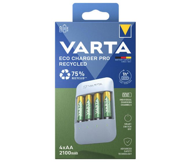 Das Ladegerät ist Teil der Eco Pro Recycled Serie von VARTA, die für ihre umweltfreundlichen Produkte bekannt ist. Die Batterien sind aus recyceltem Material hergestellt und bieten die gewohnte Zuverlässigkeit von VARTA.