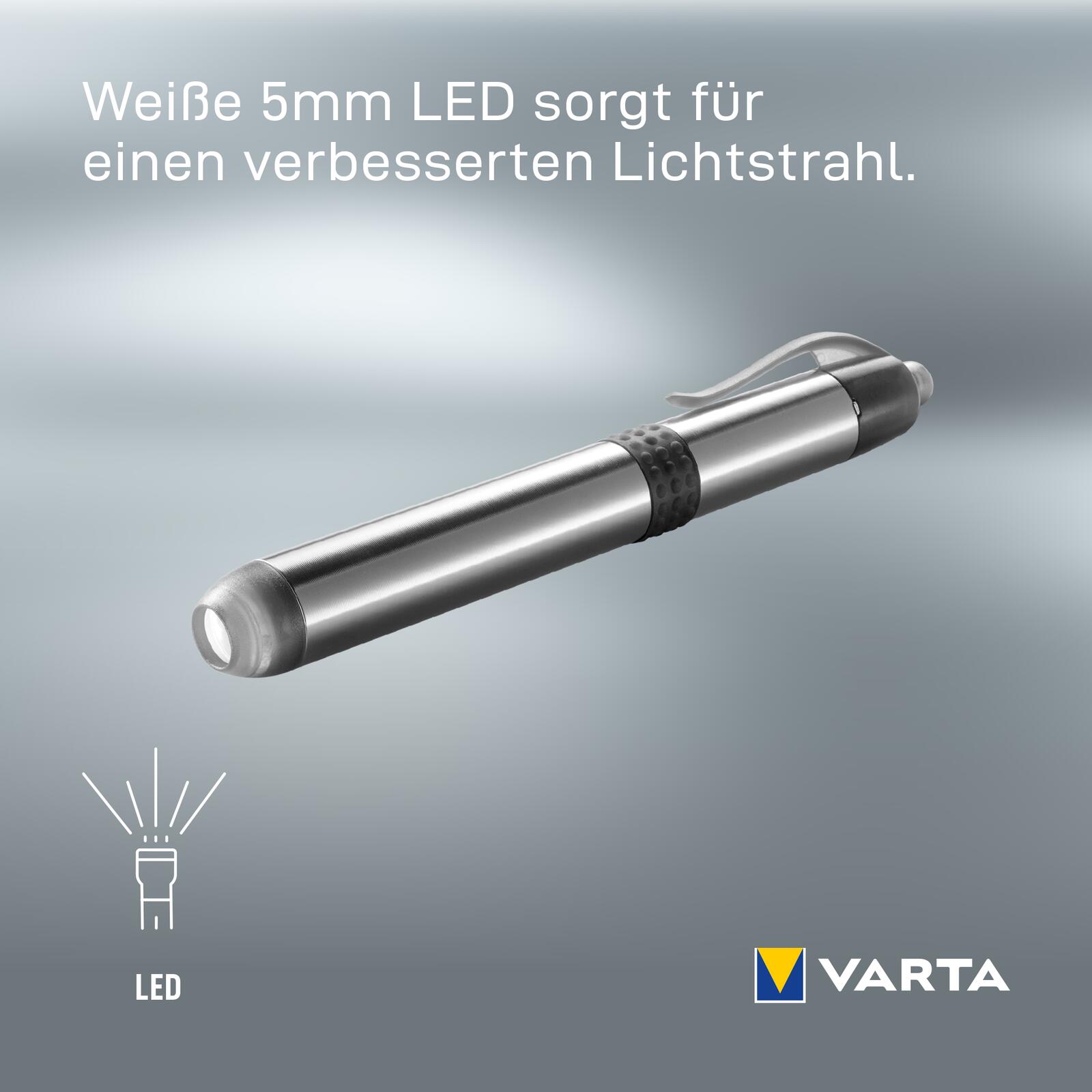 - Lieferumfang: VARTA Pen Light + 1x VARTA Longlife Power AAA Batterie.