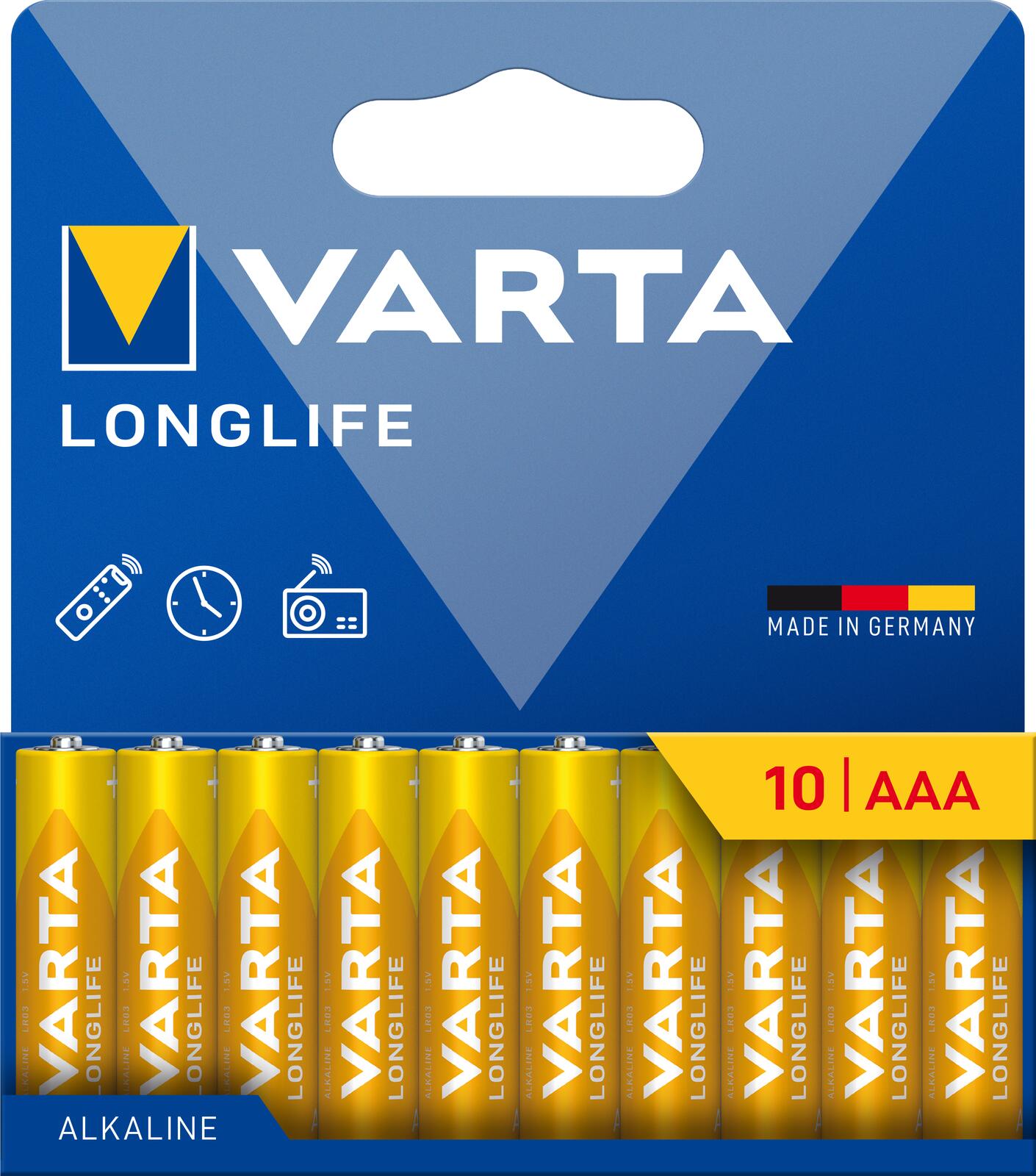- Lieferumfang: VARTA LONGLIFE Micro (AAA) Alkaline Batterie, 10 Stück