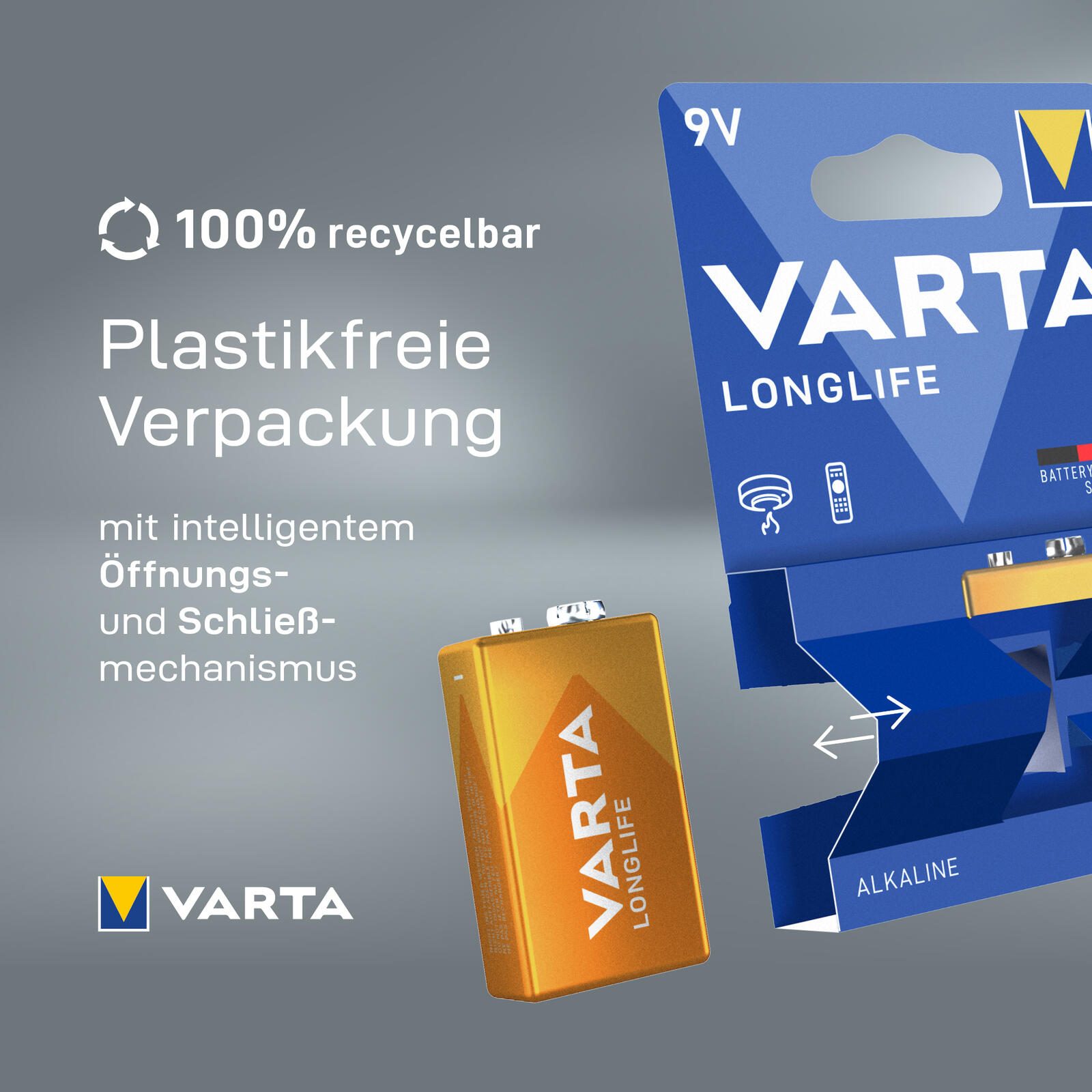 - Lieferumfang: VARTA Longlife E-Block (9V) Alkaline Batterie, 1 Stück