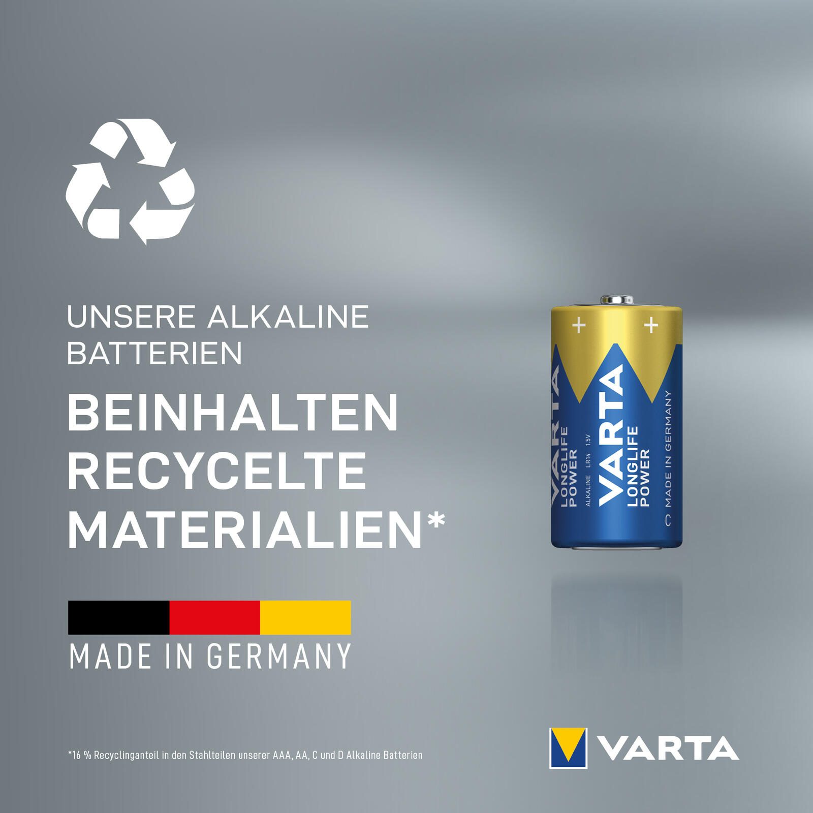 - Lieferumfang: VARTA LONGLIFE Power Baby (C) Alkaline Batterie, 2 Stück