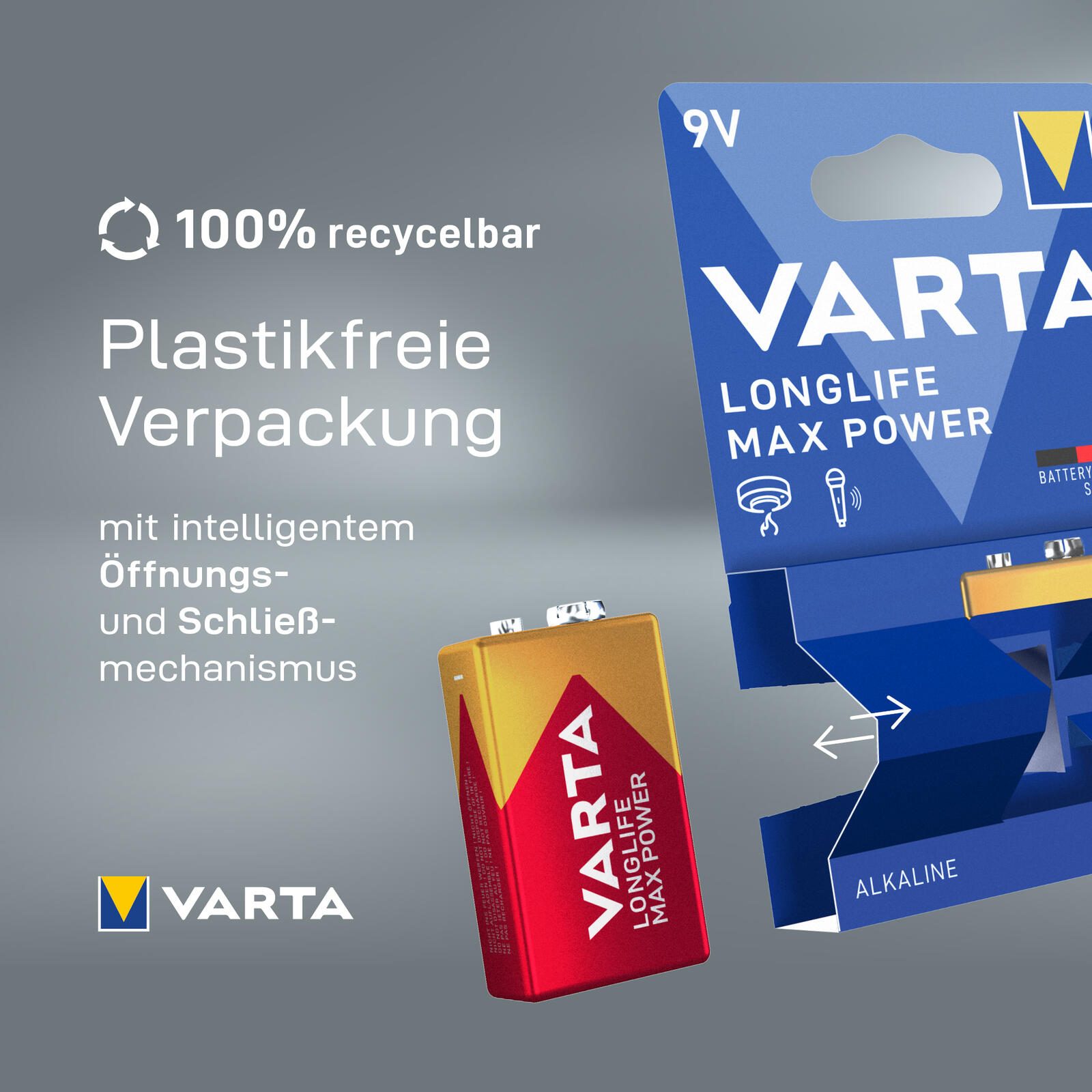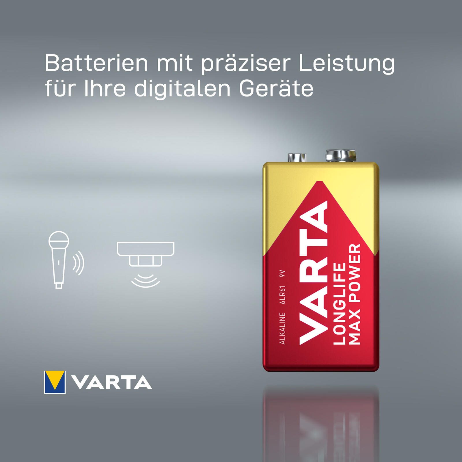 - Lieferumfang: VARTA Longlife Max Power E-Block (9V) Alkaline Batterie, 1 Stück
