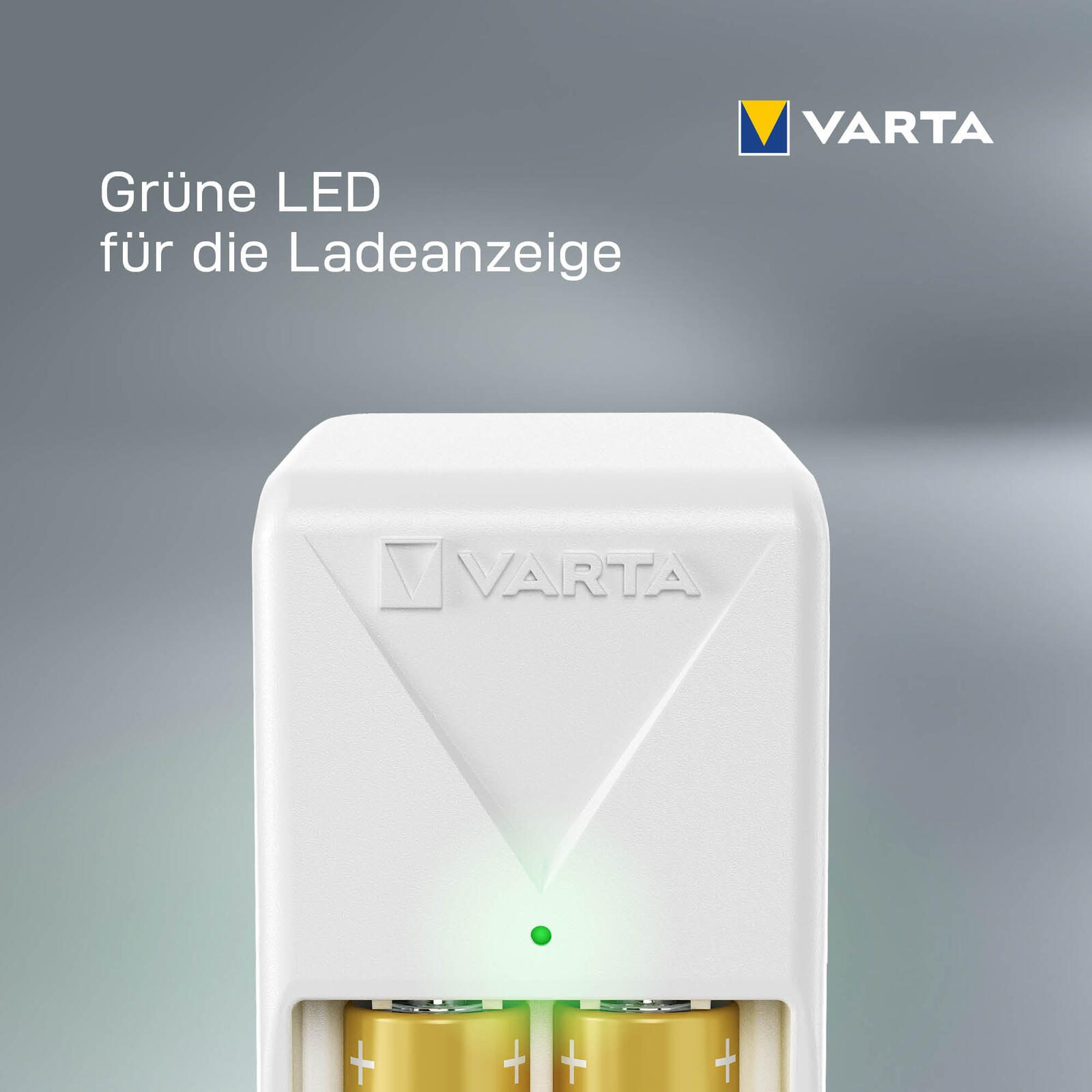 - Kompaktes und handliches Ladegerät in moderner weißer Farbe mit grünen LEDs zur Ladeanzeige. Einzigartige VARTA-Markenelemente sorgen für einen außergewöhnlichen Produktlook