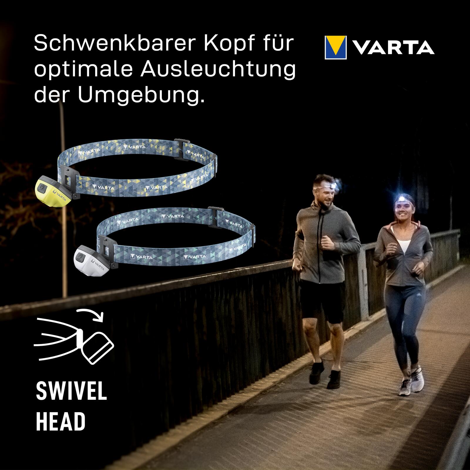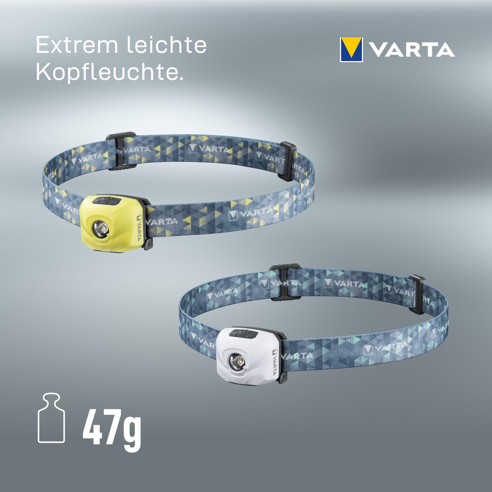 Das wiederaufladbare VARTA Outdoor Sports Ultralight H30R in weiß ist dank seines minimalen Gewichts von 47 g, seines attraktiven Designs und der reflektierenden VARTA-Logos für bessere Sichtbarkeit bei Nacht, einer Wasserbeständigkeit von IPX7 und einer Stoßfestigkeit von bis zu 1,5 m der perfekte Begleiter für Outdoor-Sportarten. Mit einer dimmbaren Lichtleistung von bis zu 300 lm, einer Leuchtweite von bis zu 91 m und einem schwenkbaren Kopf beleuchtet die Kopfleuchte jede Umgebung perfekt. Eine Laufzeit von 21 Stunden, ein abnehmbarer Befestigungsclip zur Verwendung als Cliplicht und ein waschbares Kopfband runden diesen Scheinwerfer ab und machen ihn ideal zum Laufen, Wandern, Radfahren oder Spazierengehen.