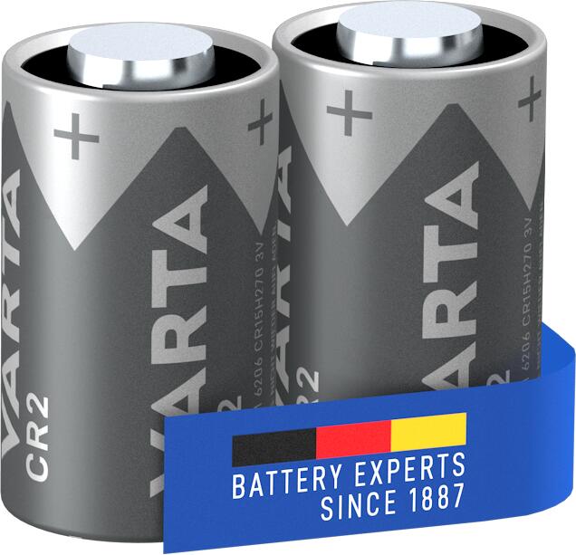 - VARTA LITHIUM Zylindrisch CR2 3V in einem Blister mit 2 Batterien. Zellengröße: 15,6mm Durchmesser / 27,0mm Höhe