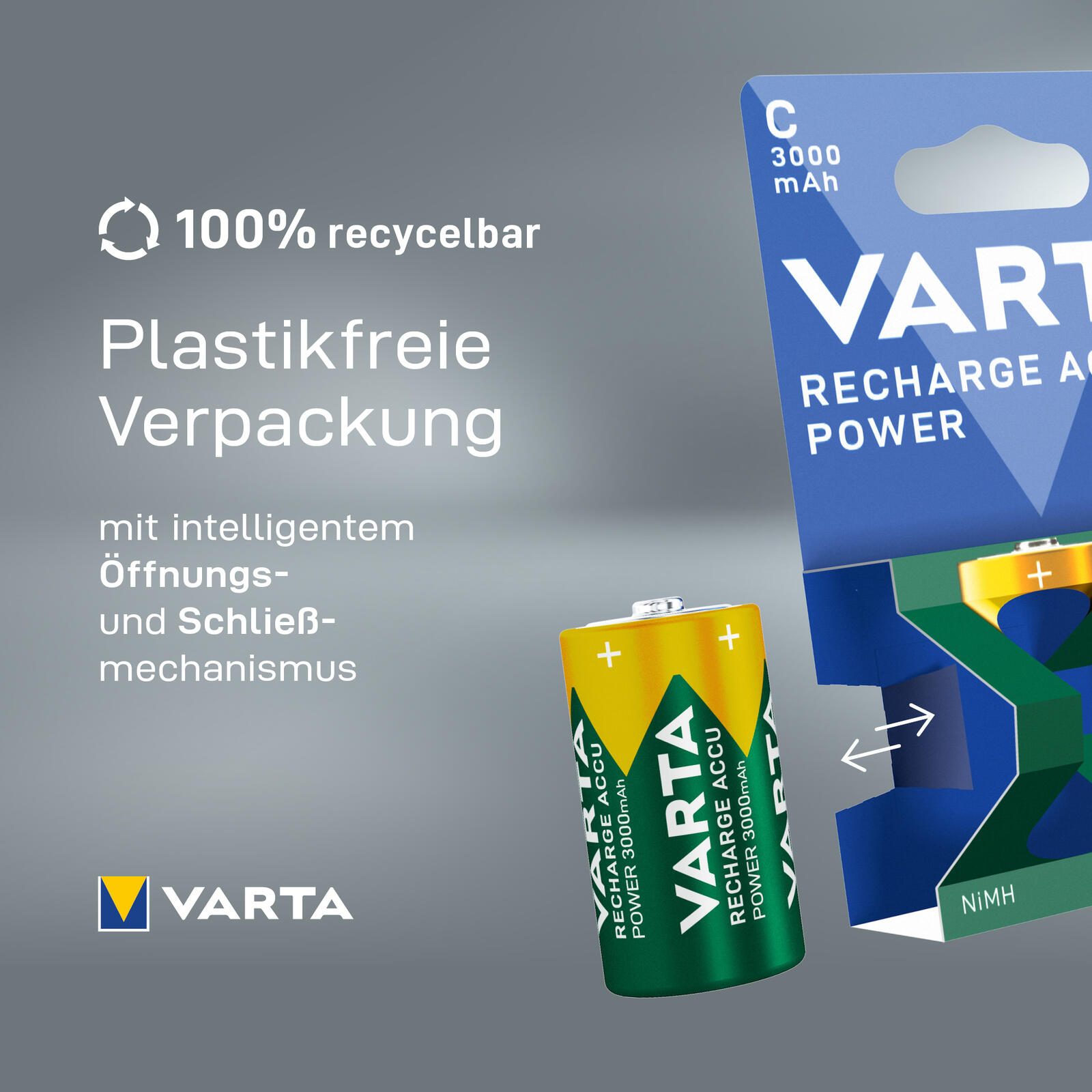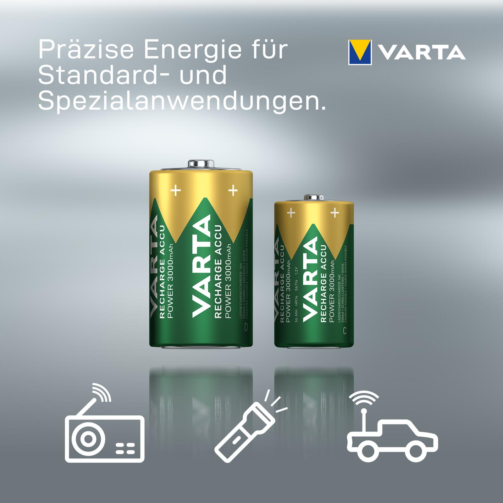 - Der VARTA Recharge Accu Power C 3000 mAh ist hunderte Male ohne Memory-Effekt wiederaufladbar.