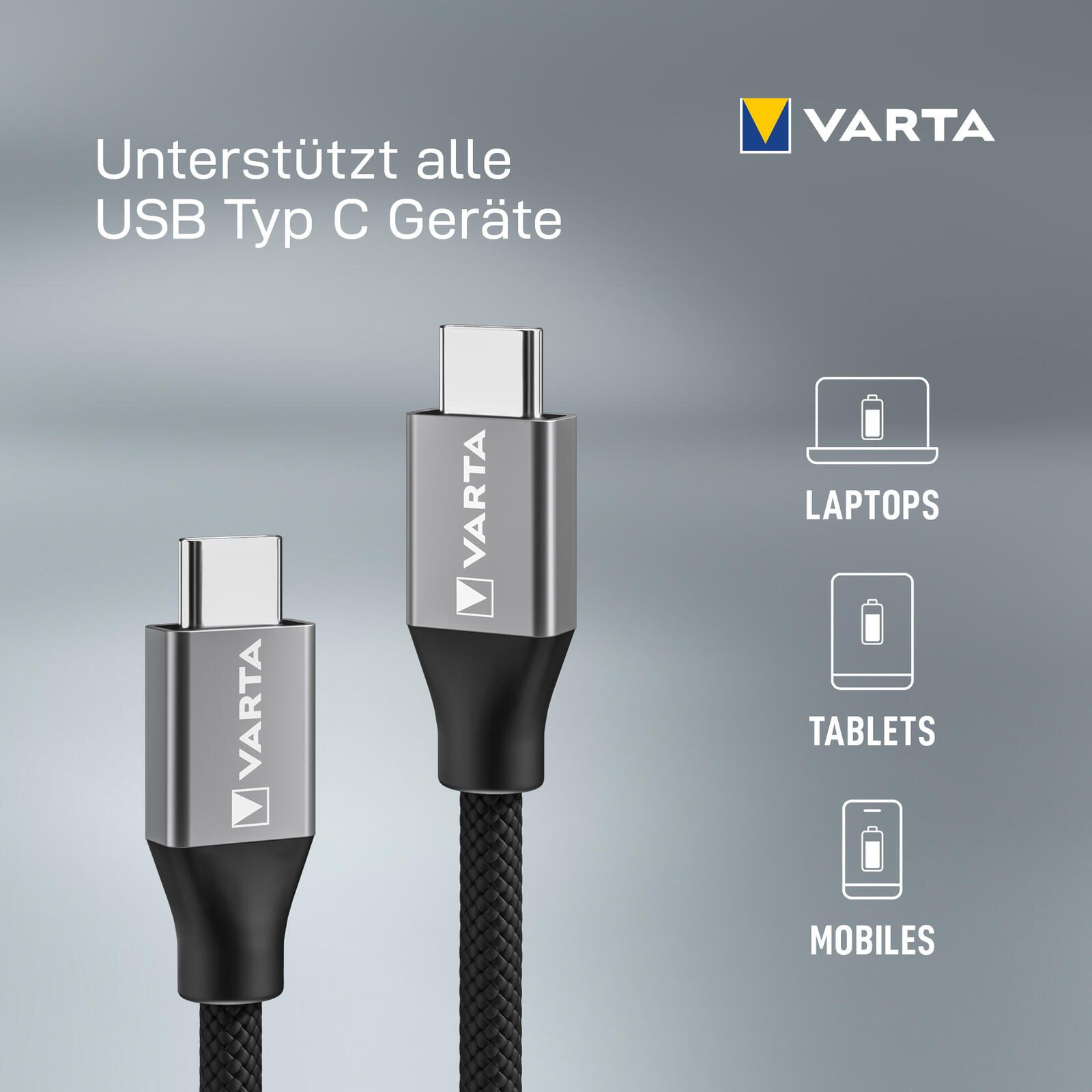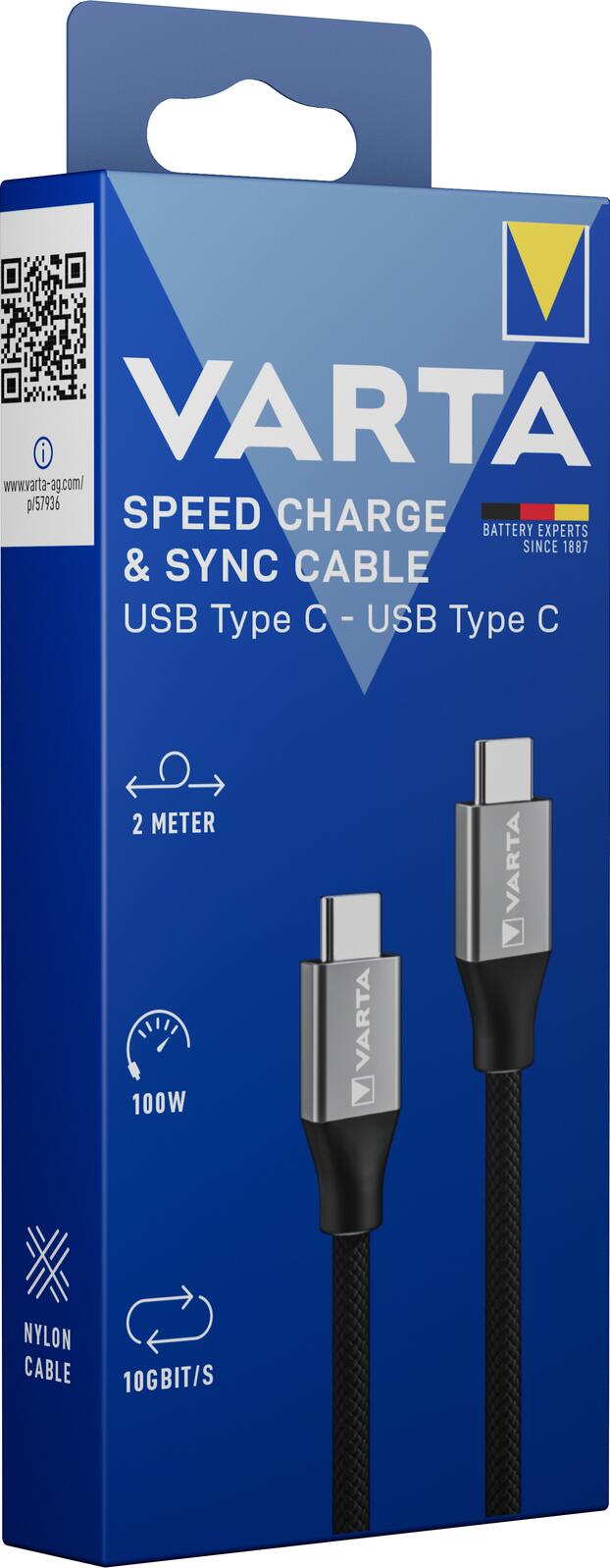 - Lieferumfang: 1x VARTA Speed Charge & Sync USB Type C auf USB Type C Kabel
