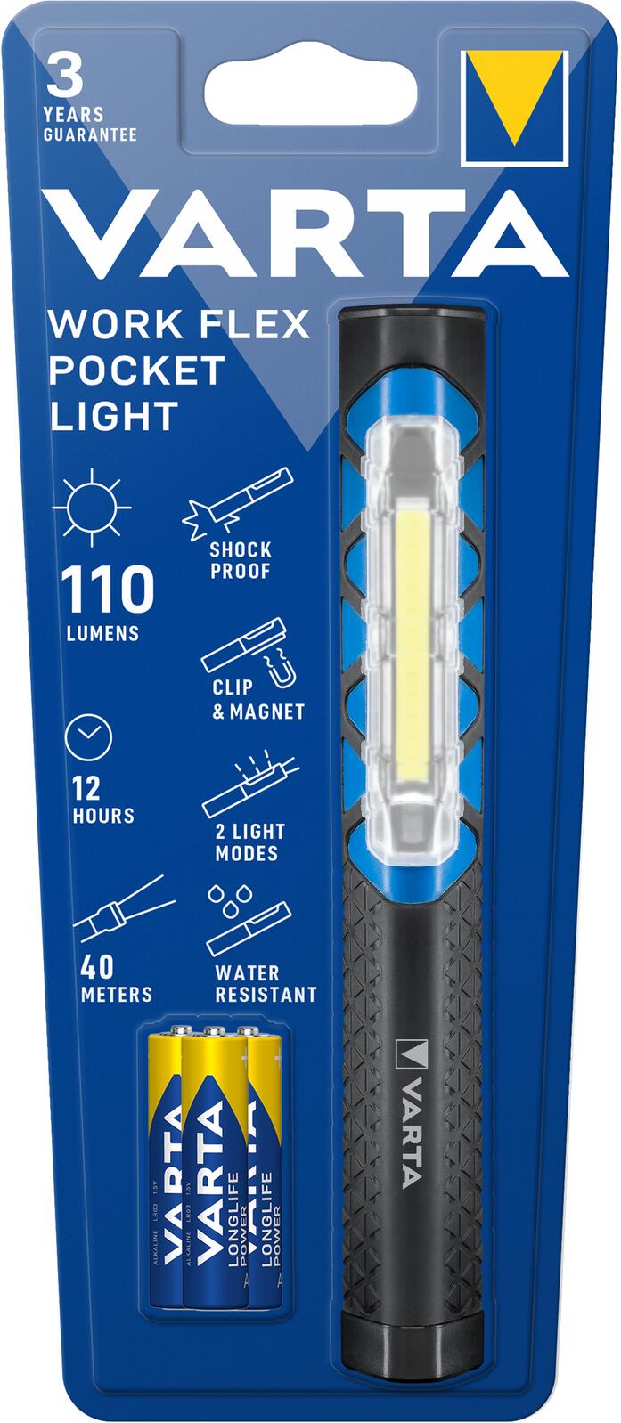 - Lieferumfang: VARTA Work Flex Pocket Light + 3x VARTA Longlife AAA Batterien