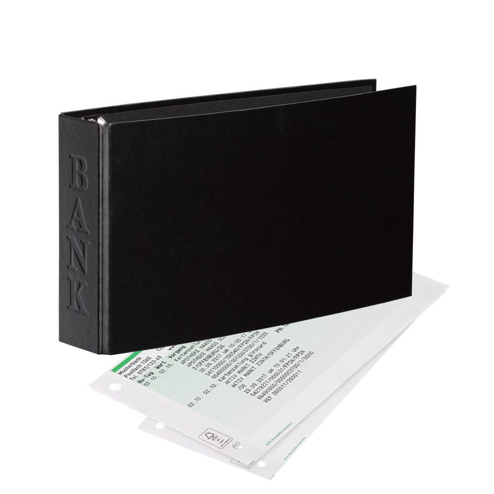 Das VELOFLEX Bankringbuch in elegantem Schwarz ist die perfekte Lösung für deine Organisationsbedürfnisse. Mit einer Rückenbreite von 4,5 cm bietet es ausreichend Platz für die Ablage von Dokumenten im Format DIN A6 quer. Der robuste Karton sorgt für eine langlebige Nutzung und schützt deine Unterlagen zuverlässig. Die 2-D-Ring-Mechanik gewährleistet ein einfaches und sicheres Abheften deiner Dokumente. Ob wichtige Unterlagen, Notizen oder kreative Entwürfe – dieses Bankringbuch hält alles ordentlich an einem Ort. Das ansprechende Design mit dem Schriftzug „Bank“ verleiht dem Ordner eine professionelle Note und macht ihn zu einem idealen Begleiter im Büro, in der Schule oder zu Hause. Mit einem Füllvermögen von bis zu 300 Blatt (bei 80 g Papier) ist das VELOFLEX Bankringbuch nicht nur praktisch, sondern auch äußerst funktional. Es bietet dir die Möglichkeit, deine Papiere übersichtlich zu sortieren und jederzeit schnell darauf zuzugreifen. Die Innenseiten sind aus hochwertigem Papier gefertigt, was für eine ansprechende Haptik sorgt und gleichzeitig die Langlebigkeit des Produkts unterstützt. Die schlichte, schwarze Farbe des Bankringbuchs passt zu jedem Einrichtungsstil und lässt sich problemlos in bestehende Bürosysteme integrieren. Ohne zusätzliche Innentaschen oder Kantenschutz bleibt der Fokus auf der Funktionalität und der klaren Linienführung des Designs. Das VELOFLEX Bankringbuch ist somit nicht nur ein praktisches Hilfsmittel, sondern auch ein stilvolles Accessoire, das dir hilft, Ordnung und Struktur in deinen Unterlagen zu bewahren. Es ist die ideale Wahl für alle, die Wert auf Qualität und Design legen.Technische Daten
