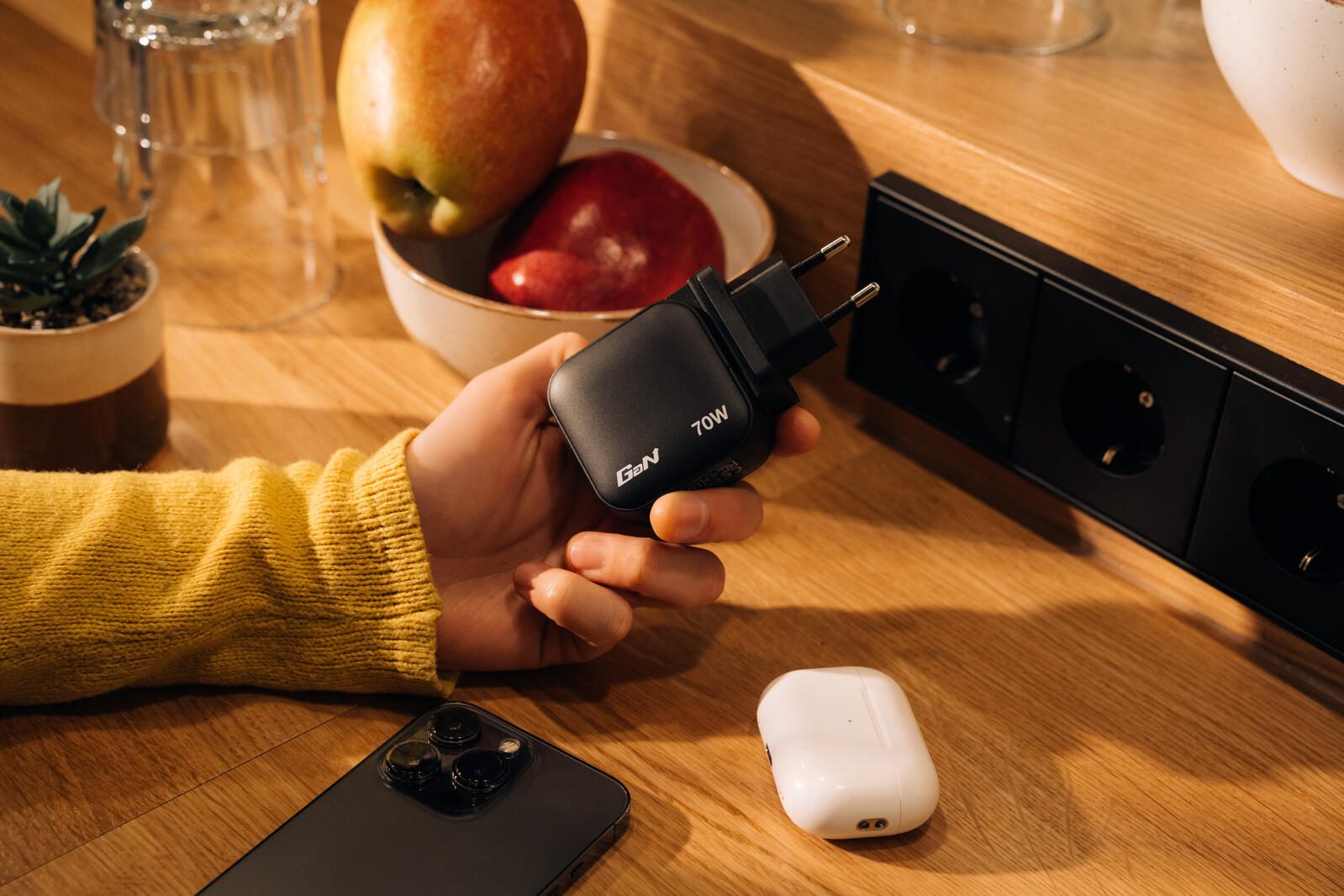 - Schnittstellen: USB A, 2 x USB C, Steckdose