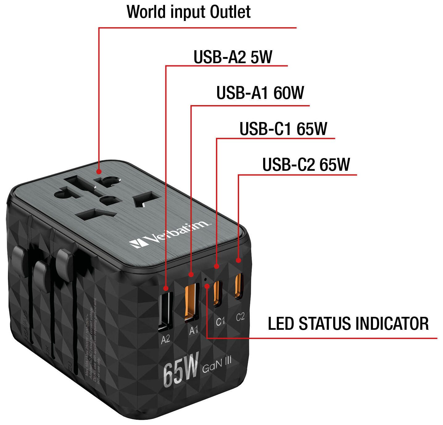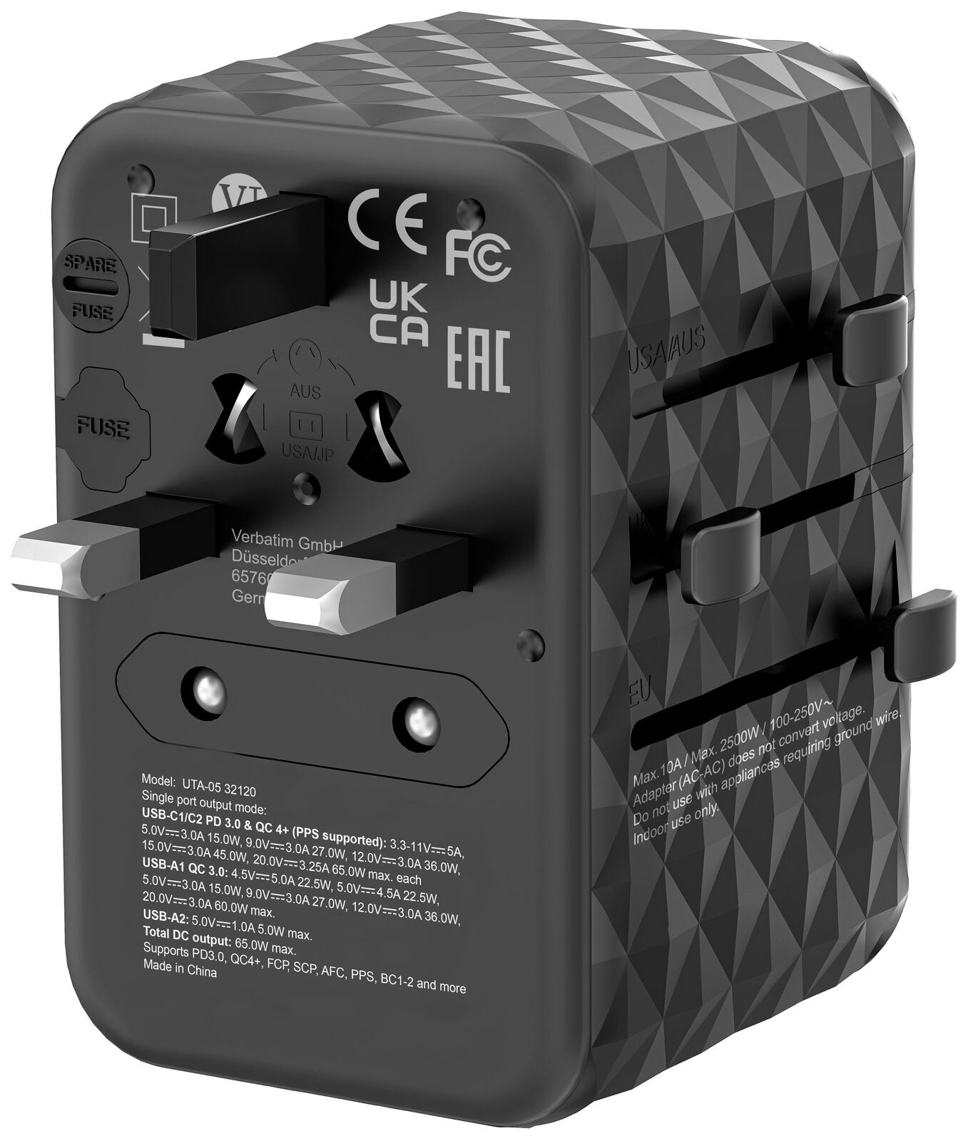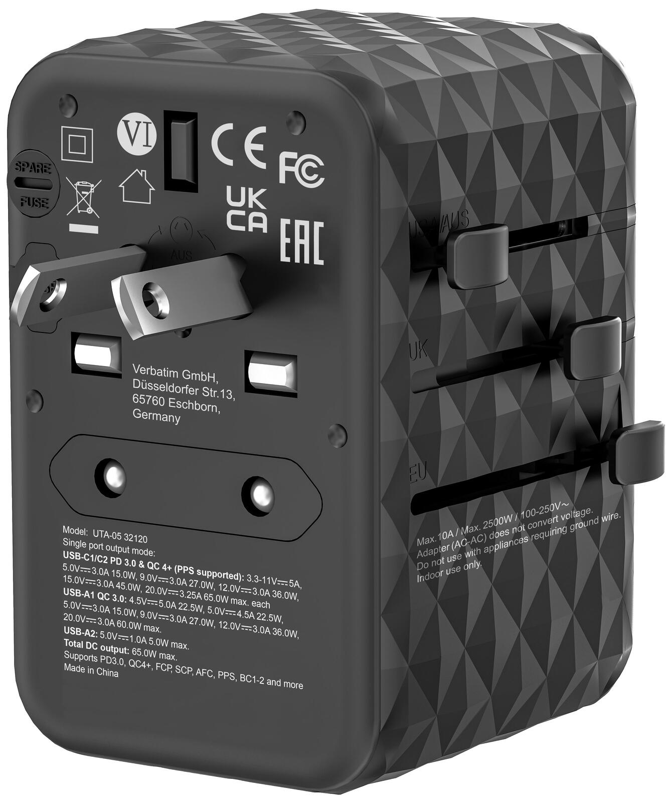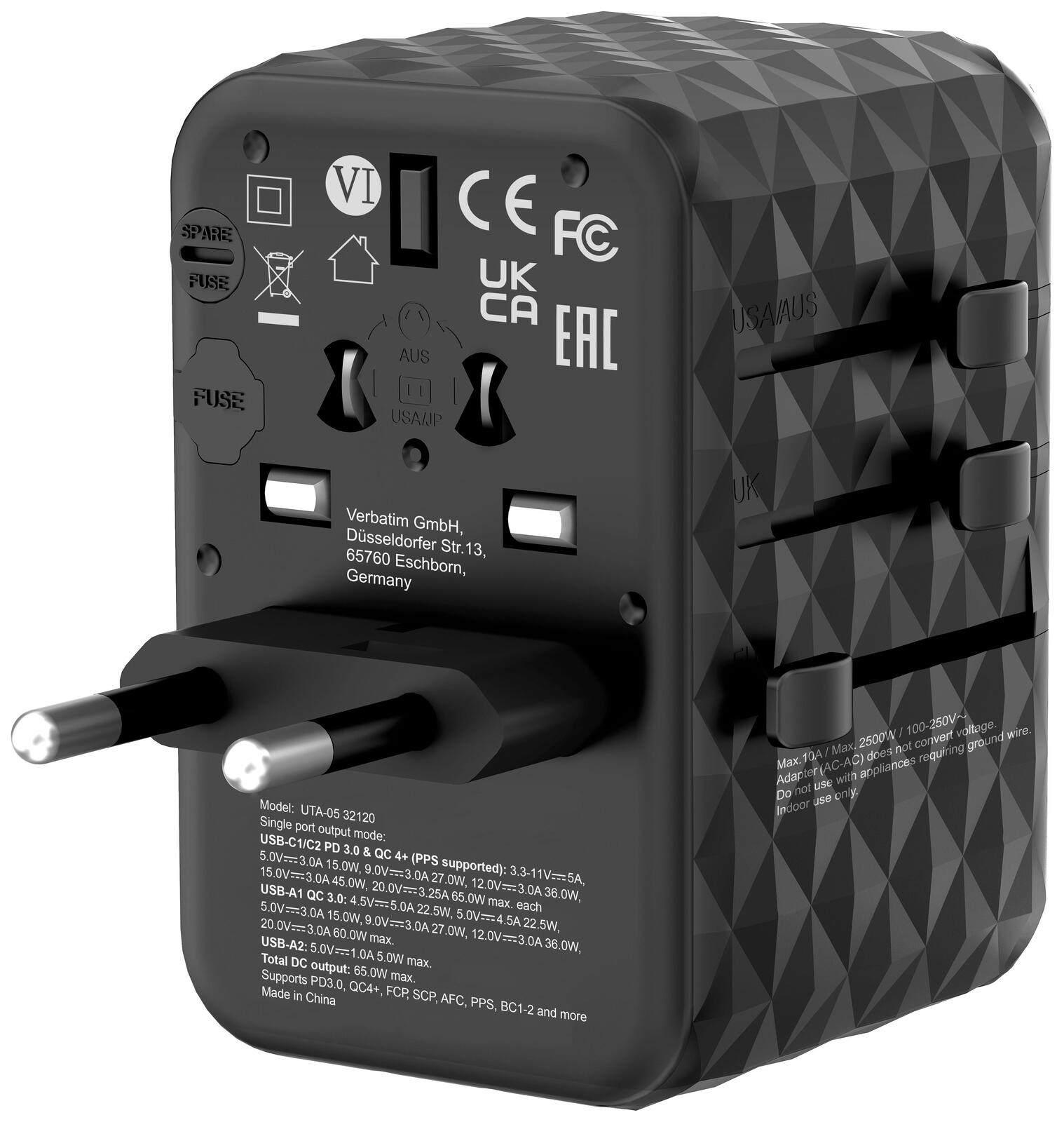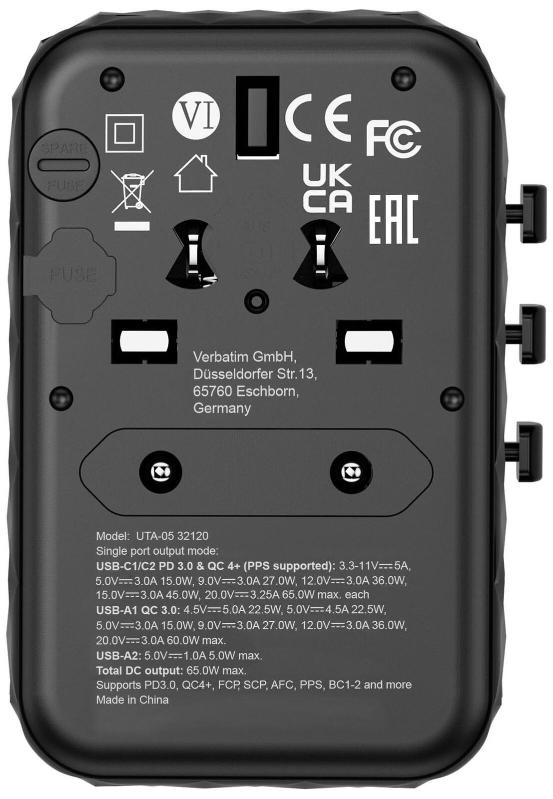 verbatim UTA-05 GaN-Ladeadapter schwarz, 65 W