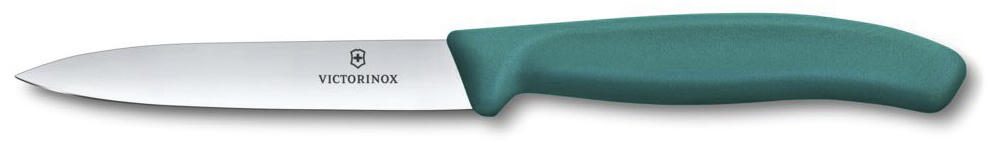 Das VICTORINOX Küchenmesser Swiss Classic in den Farben Silber und Grün ist ein Gemüsemesser mit einer Klingenlänge von 10 cm. Die Klinge besteht aus hochwertigem Klingenstahl, der für seine Robustheit und Langlebigkeit bekannt ist. Dieses Messer ist speziell für das Schneiden von Obst und Gemüse konzipiert und ermöglicht präzises Arbeiten in der Küche.