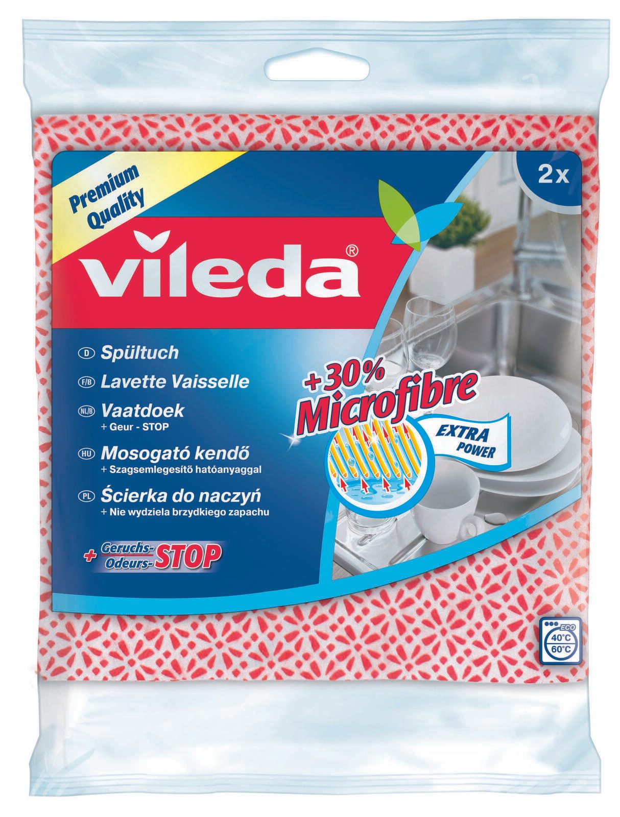 Das vileda Spültuch mit den Maßen 34 cm x 34 cm ist ein unverzichtbarer Helfer in deiner Küche. Ausgestattet mit einer innovativen Geruchsstoptechnologie, sorgt dieses Spültuch dafür, dass unangenehme Gerüche der Vergangenheit angehören. Es wurde speziell entwickelt, um selbst kleinste Schmutzpartikel mühelos aufzunehmen und bietet somit eine gründliche Reinigung für alle Oberflächen. Die Kombination aus 35% Baumwolle, 35% Viskose und 30% Polyester macht das Spültuch besonders robust und langlebig. Diese hochwertige Materialzusammensetzung gewährleistet nicht nur eine effektive Reinigung, sondern auch eine angenehme Haptik. Du wirst den Unterschied sofort spüren, wenn du das Tuch in der Hand hältst. Das vileda Spültuch ist bei 60°C waschbar, was eine einfache Pflege und Hygiene garantiert. Nach dem Waschen behält es seine Form und Funktion, sodass du lange Freude an diesem praktischen Küchenutensil hast. Mit seiner ansprechenden Farbgestaltung in Weiß und Rot fügt sich das Spültuch harmonisch in jede Kücheneinrichtung ein und sorgt für einen frischen Look. Ein Pack enthält zwei Spültücher, was dir die Möglichkeit gibt, immer ein frisches Tuch zur Hand zu haben. Egal, ob beim Abwaschen von Geschirr, dem Reinigen von Oberflächen oder beim Wischen von Tischen, das vileda Spültuch ist vielseitig einsetzbar und wird schnell zu deinem bevorzugten Reinigungshelfer. Vertraue auf die Qualität von Vileda und erlebe, wie einfach und effektiv Reinigung sein kann.Technische Daten