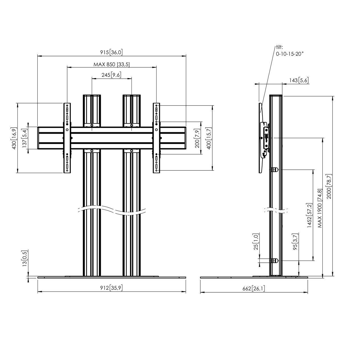 Vogel's FD2084 TV-Standfuß bis 165 cm (65") doppel Profil, Höhe 200 cm, max. 120 kg, Vesa max. 800 x 400, silber-schwarz