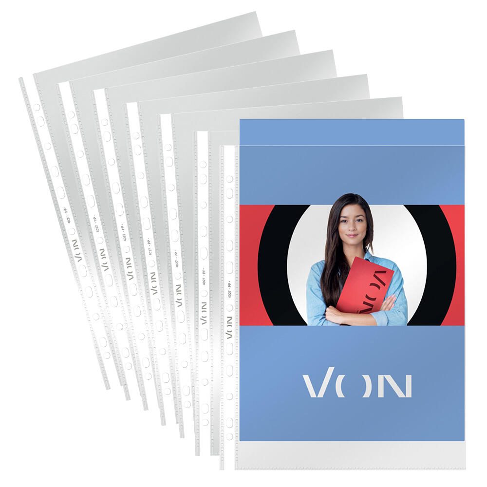 Die VON LEITZ Prospekthüllen sind speziell für Dokumente im Format DIN A4 gefertigt und bieten eine glasklare, glatte Oberfläche. Sie bestehen aus robustem Polypropylen (PP), das für eine lange Haltbarkeit sorgt und die Dokumente zuverlässig schützt.
