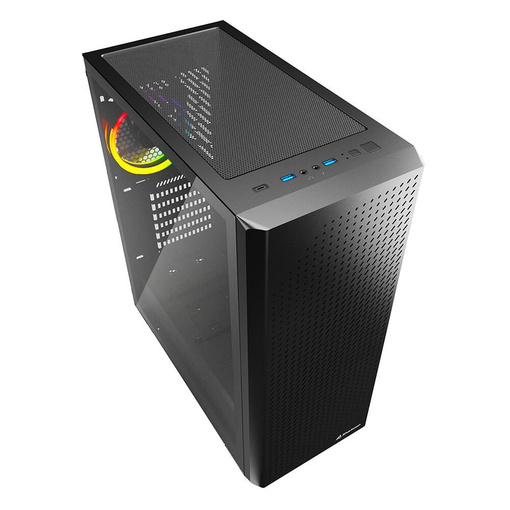Sharkoon PC Gehäuse VS9 RGB Black ATX schwarz 2x U3, 1x Type-C, 2x 120, 1x 120 ARGB, Tempered Glass, ARGB Controller