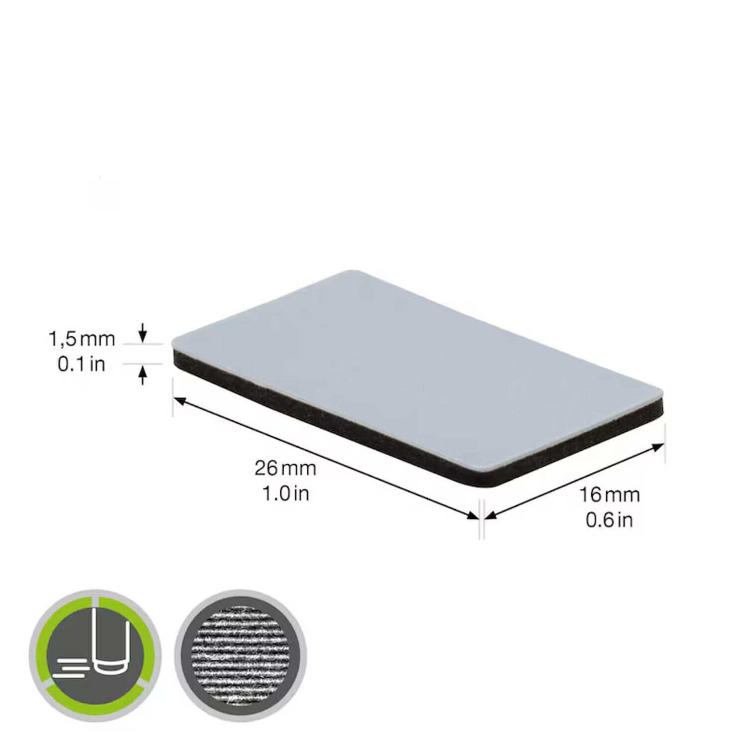 Die WAGNER® design yourself EH 1126 PFTE-Gleiter sind praktische Kunststoffgleiter, die speziell entwickelt wurden, um Möbel und andere Gegenstände schonend zu schützen. Sie sind rechteckig geformt und in einem unauffälligen Grauton gehalten, wodurch sie sich gut an verschiedene Oberflächen anpassen. Mit einer Breite von 2,6 cm, einer Tiefe von 1,6 cm und einer Höhe von nur 1,5 mm sind sie unauffällig und dennoch effektiv.