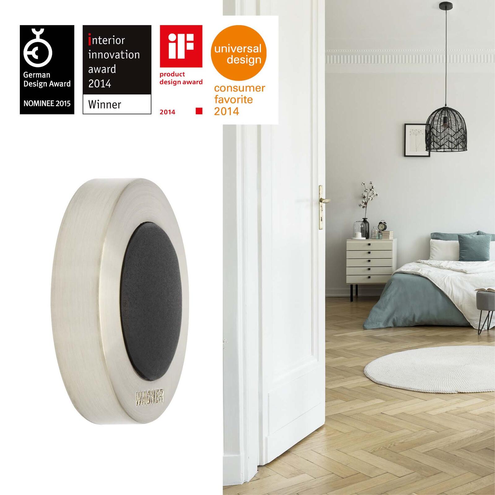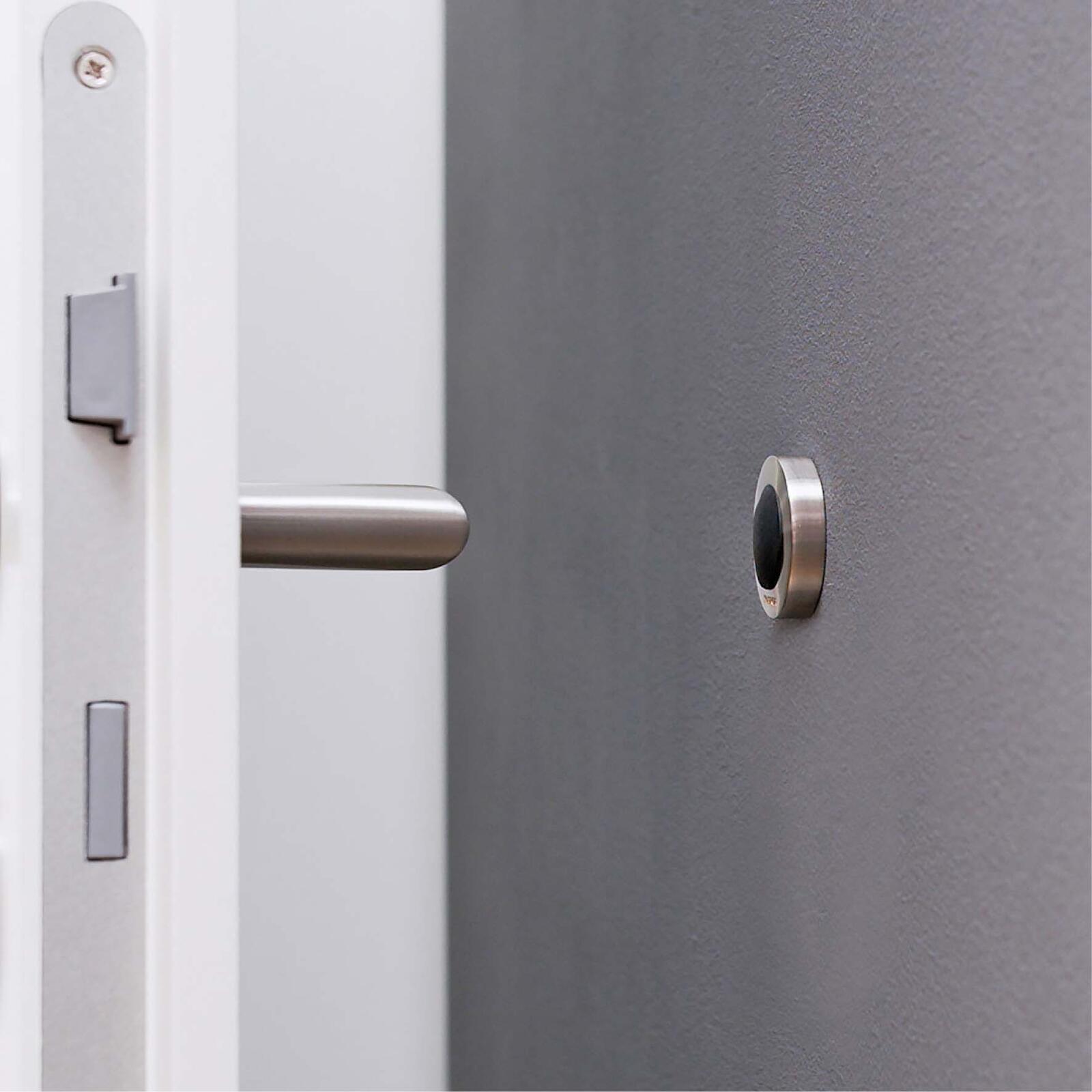 Der Türstopper WAGNER® design yourself EH 5140 besteht aus robustem Zinkdruckguss und Vollgummi. Er ist in den Farbtönen Edelstahl und Schwarz erhältlich und zeichnet sich durch seine kompakte Bauweise mit einer Breite von 3,8 cm und einer Höhe von 1,4 cm aus. Mit einem Gewicht von 47 Gramm ist der Türstopper leicht und dennoch stabil.