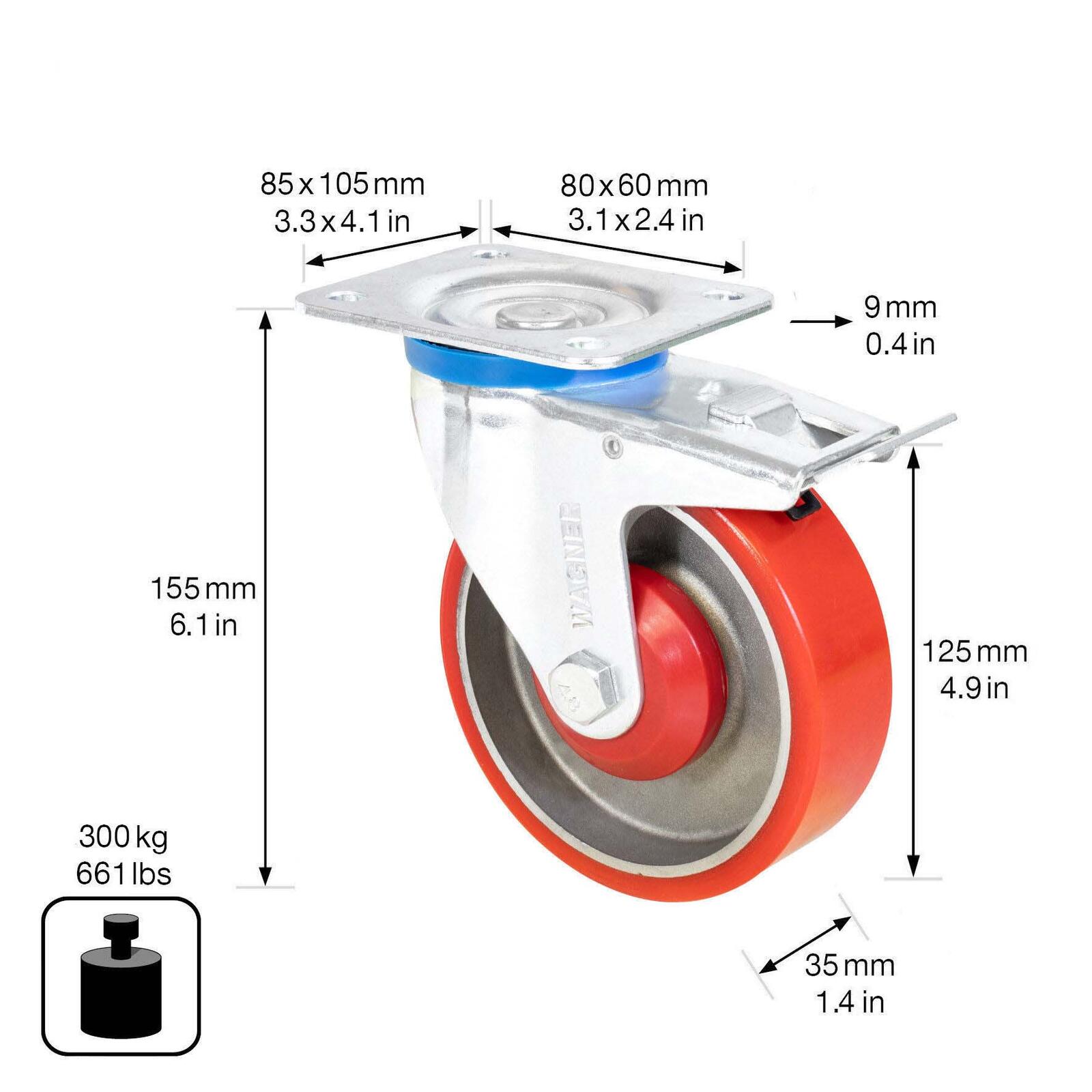 WAGNER® design yourself Schwerlast-Lenkrolle RO 0225 rot