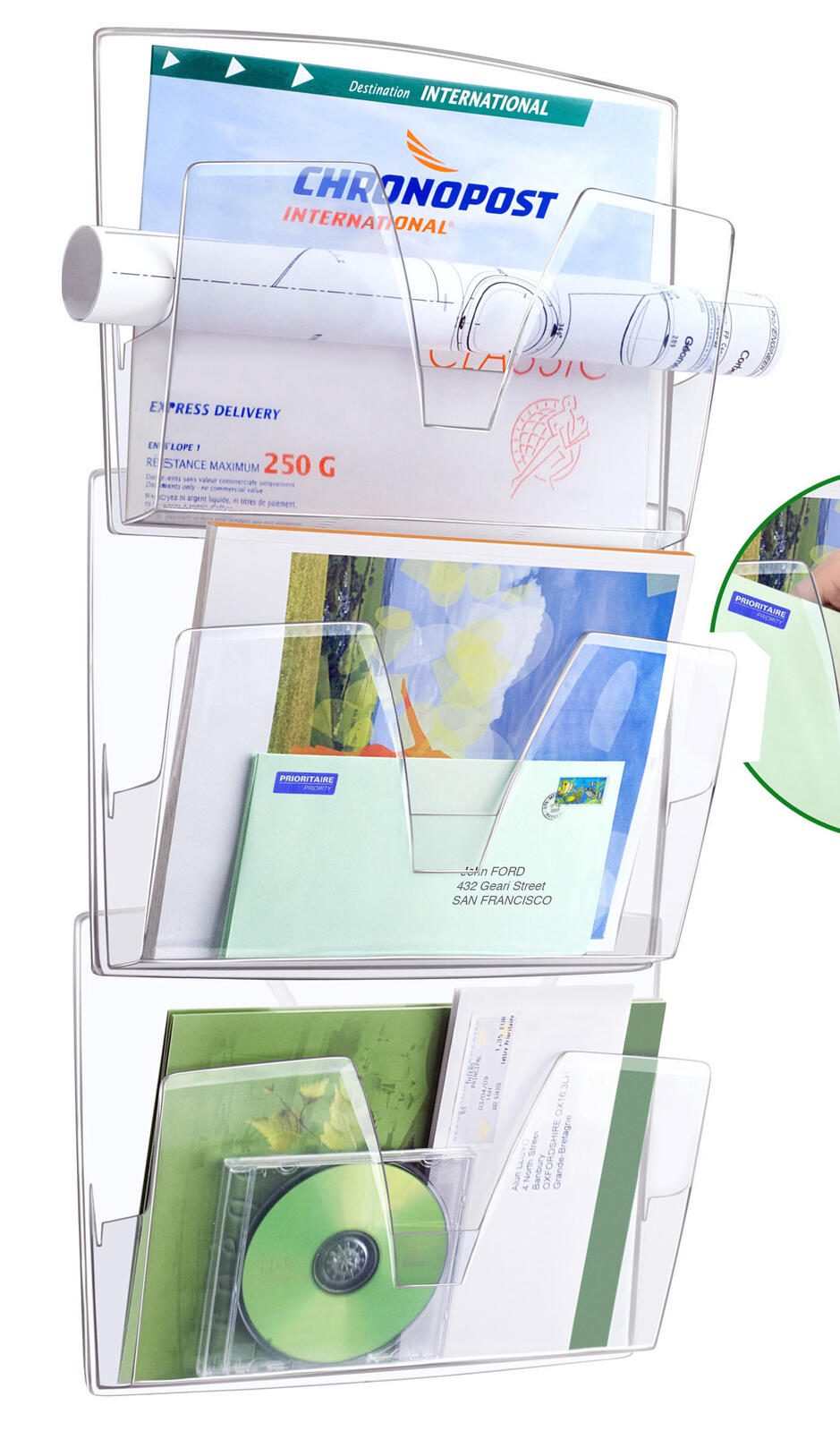 Dank des cep Wandprospekthalters mit 3 Fächern in transparenter Ausführung hast du die Möglichkeit, deine Werbematerialien übersichtlich und griffbereit zu präsentieren. Dieser Wandprospekthalter eignet sich ideal für den Innenbereich und ist speziell für das Format DIN A4 konzipiert.