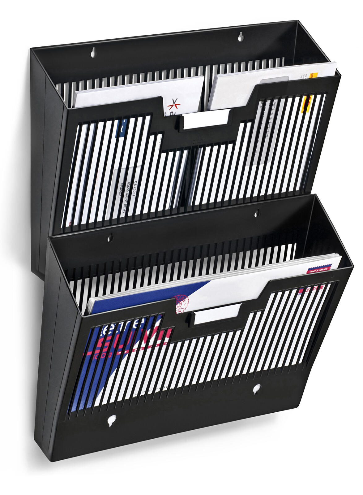 Das Produkt ist aus hochwertigem Polystyrol gefertigt, was nicht nur für Langlebigkeit, sondern auch für ein leichtes Gesamtgewicht sorgt. Durch die horizontale Ausführung in Schwarz fügt sich der Prospekthalter nahtlos in jede Umgebung ein, wodurch deine Dokumente stilvoll präsentiert werden.