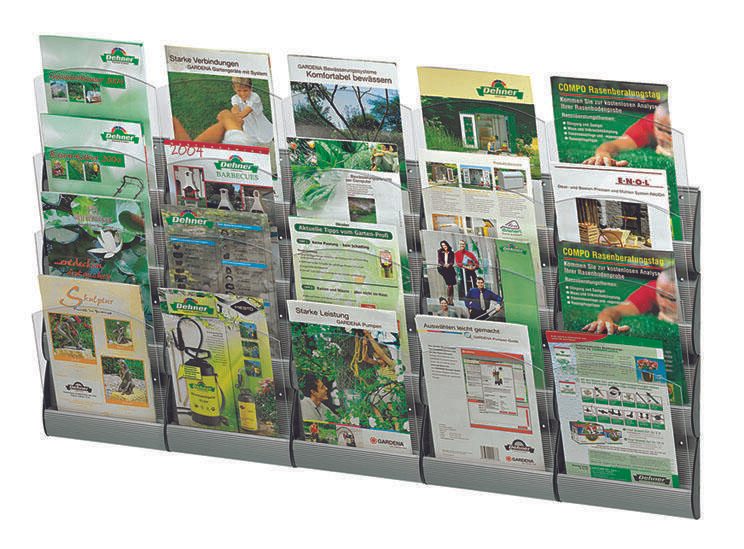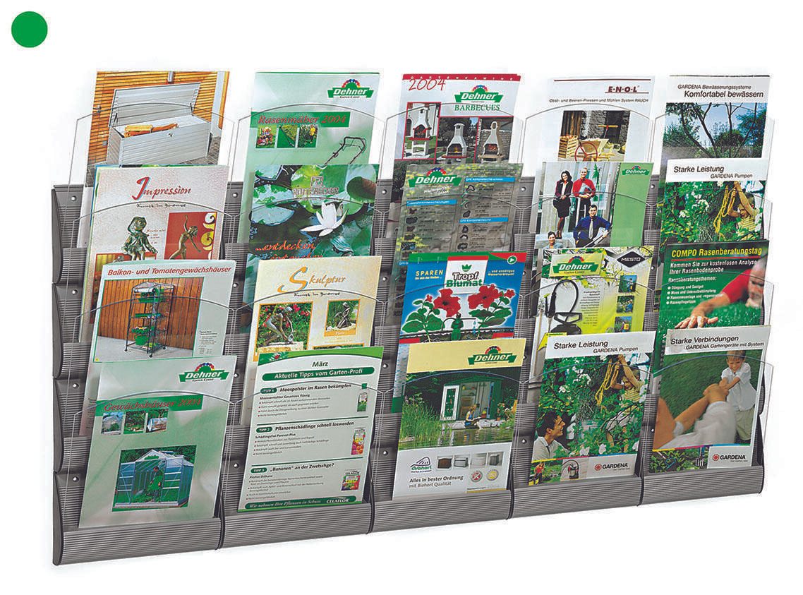 PAPERFLOW Integral Wandprospekthalter DIN A4 20-Fach silber, transparent