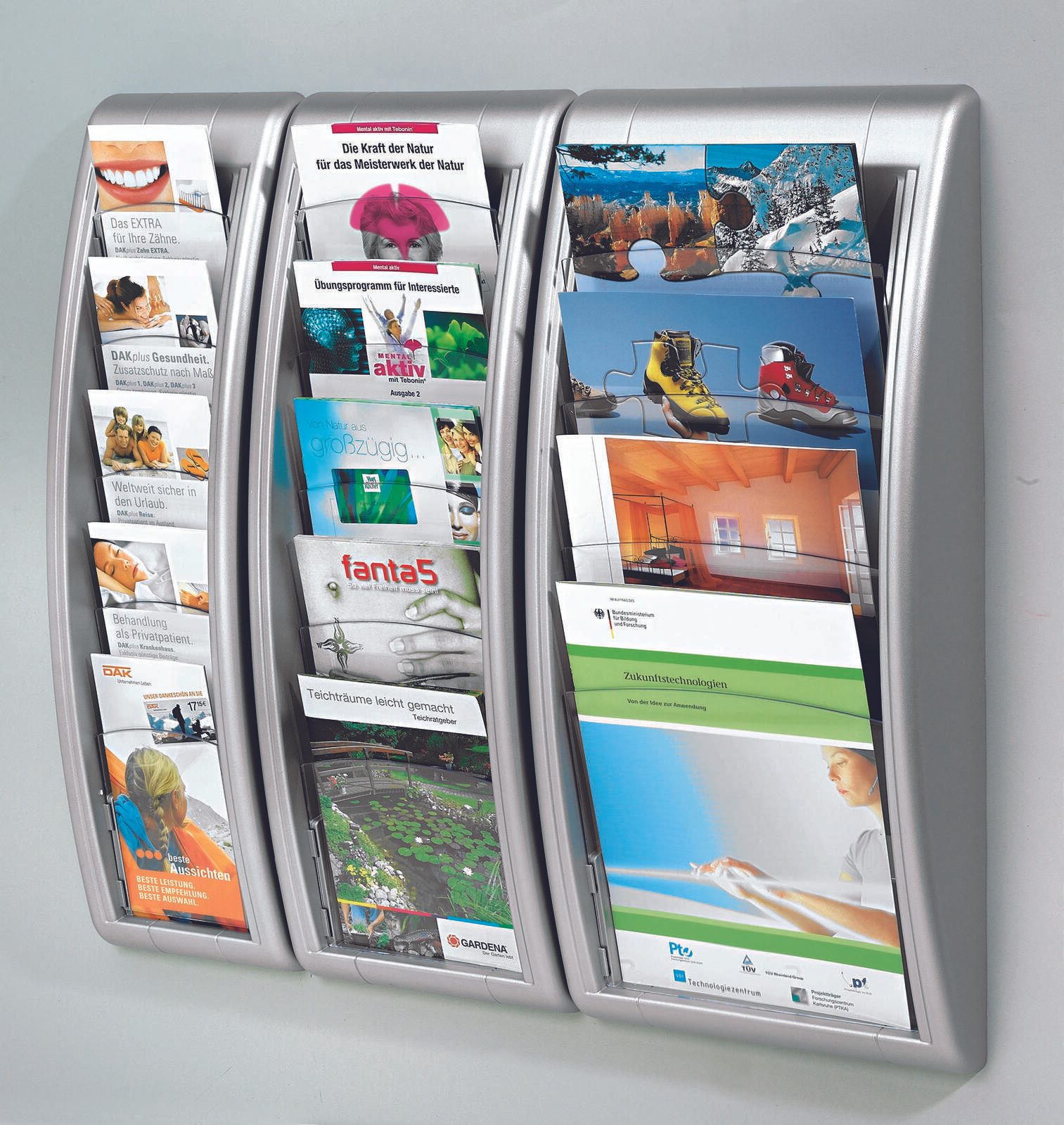 Der PAPERFLOW Wandprospekthalter in anthrazit ist die ideale Lösung für die geordnete Aufbewahrung von Dokumenten im DIN A4 Format. Mit insgesamt 4 Fächern bietet er ausreichend Platz, um deine Prospekte übersichtlich zu präsentieren.