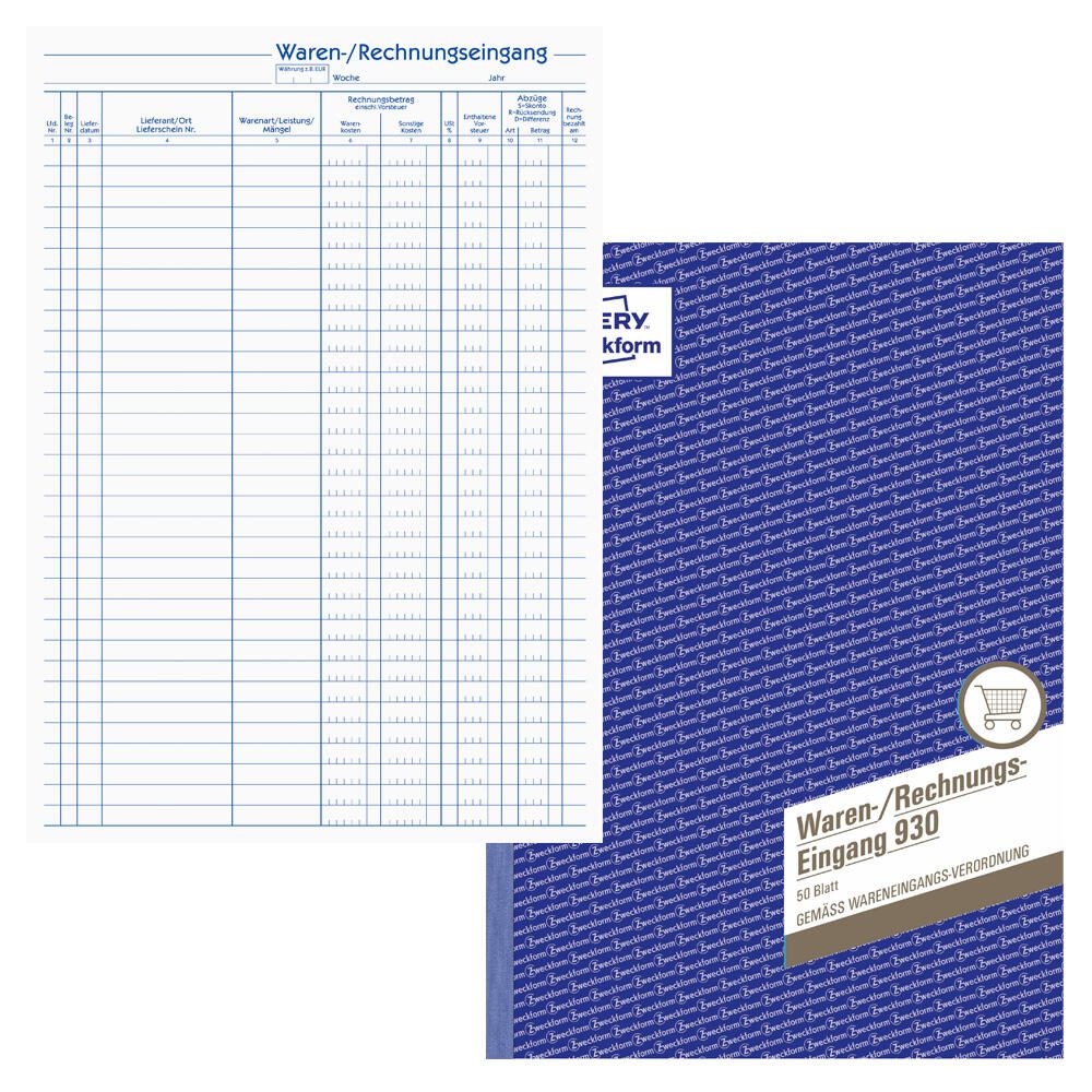 AVERY Zweckform Formularbuch Waren-/Rechnungs-Eingangsbuch 930 DIN A4 1x 50 Seiten