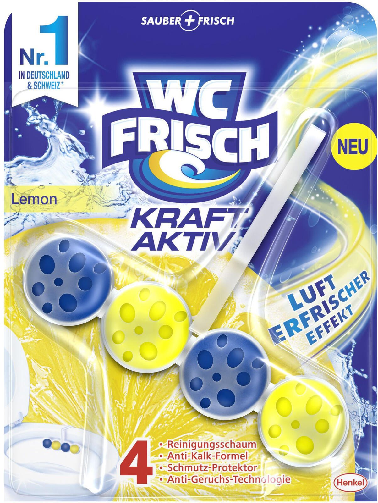 Die Serie KRAFT AKTIV von WC FRISCH steht für hochwertige Produkte, die effektiv sind. Der Hersteller WC FRISCH hat mit dem WC Frisch Lemon einen WC-Duftspüler entwickelt, der speziell mit einem erfrischenden Zitronenduft versehen ist. Dieser angenehme Duft verbreitet sich bei jeder Spülung in deinem Badezimmer und sorgt so für eine angenehme Atmosphäre.