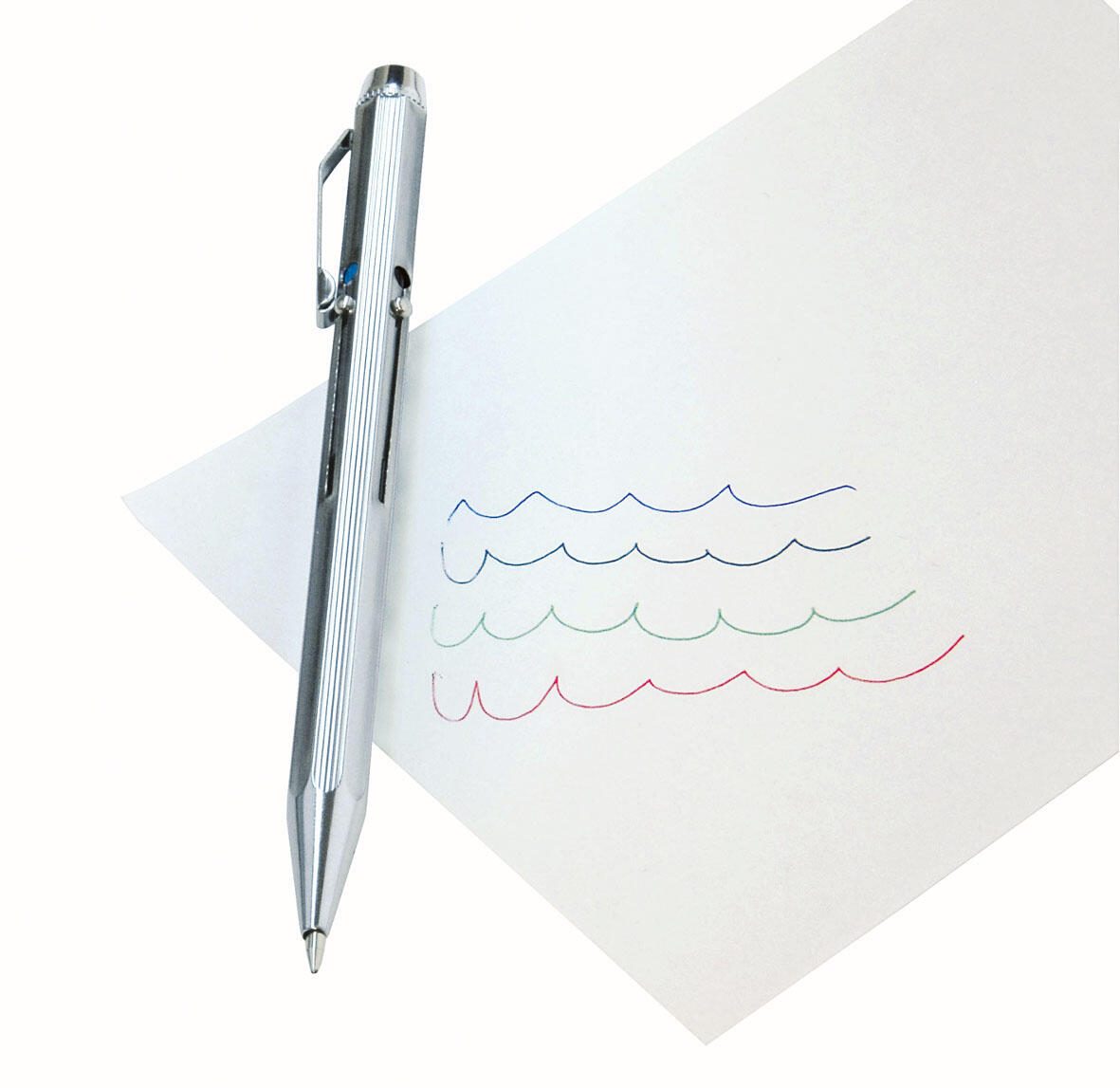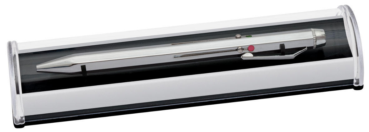 Der WEDO 4-farbkugelschreiber in Silber ist ein praktisches Schreibgerät für vielfältige Anwendungen. Dieser Druckkugelschreiber zeichnet sich durch seine Nachfüllbarkeit aus, was ihn zu einem langlebigen Begleiter macht. Mit einem Sechskant-Griff liegt er angenehm in der Hand und ermöglicht ein komfortables Schreiberlebnis. Das Gehäuse in Silber verleiht dem Kugelschreiber ein elegantes Aussehen, während die Details in Rot, Grün, Blau und Schwarz für Individualität sorgen. Mit einer Strichstärke von 0,5 mm ermöglicht der Kugelschreiber ein präzises Schreiben und eignet sich sowohl für feine Linien als auch für deutliche Akzente. Die Besonderheit dieses Kugelschreibers liegt in seinen vier Schreibfarben, die es dir ermöglichen, je nach Bedarf zwischen Rot, Grün, Blau und Schwarz zu wechseln, ohne mehrere Stifte mitführen zu müssen. Dank der bequemen Clip-Befestigung kannst du den Kugelschreiber jederzeit griffbereit am Notizbuch, der Tasche oder dem Hemdkragen befestigen. Hol dir jetzt den WEDO 4-farbkugelschreiber und erlebe die Vielseitigkeit und Benutzerfreundlichkeit dieses hochwertigen Schreibinstruments. Ideal für Schule, Büro oder Zuhause, ist dieser Kugelschreiber von WEDO ein Must-Have für alle, die stilvoll und praktisch schreiben möchten.Technische Daten