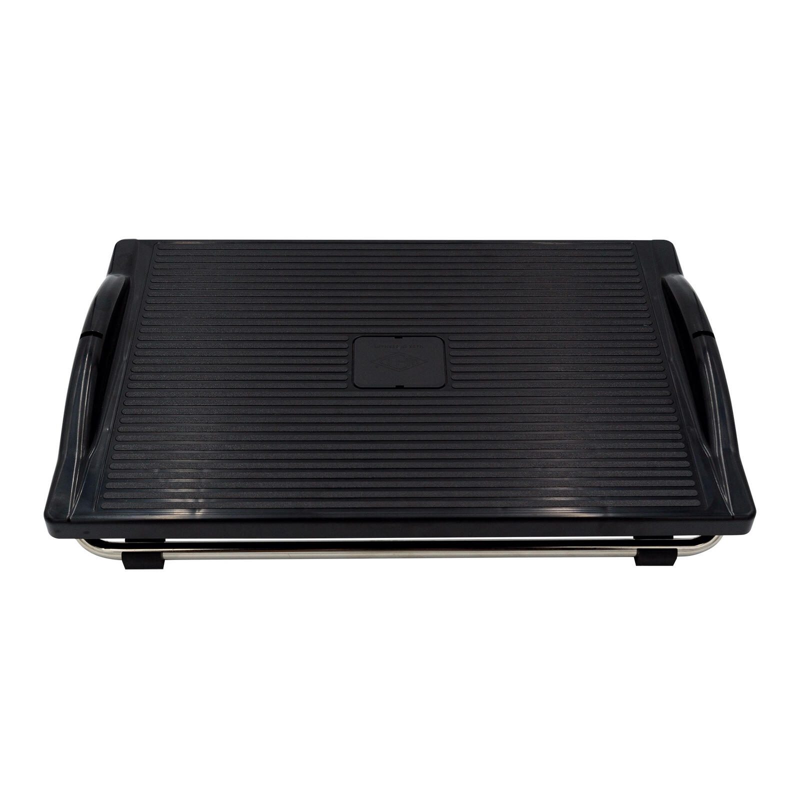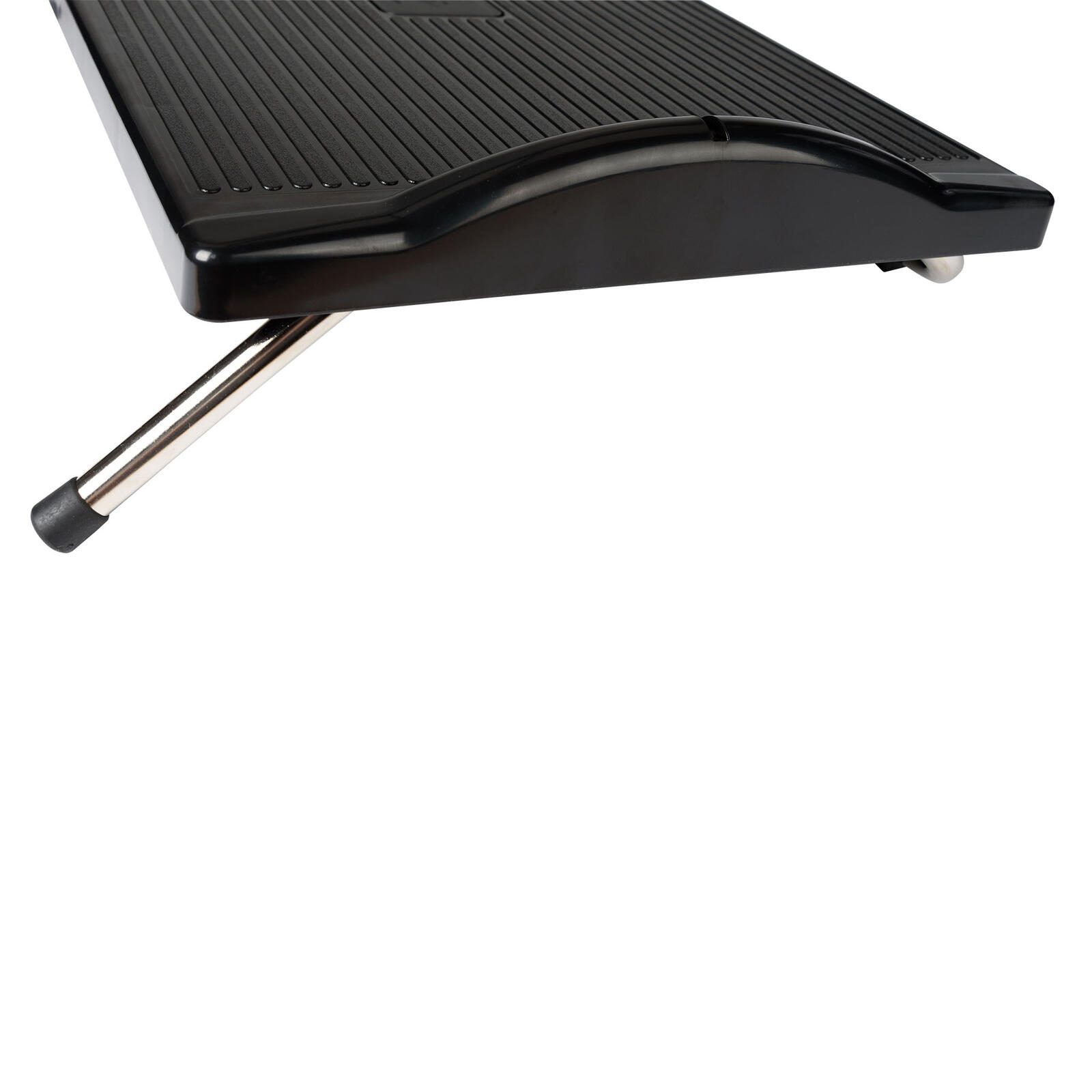 Die Kombination der Farben schwarz und chrom verleiht der Fußstütze ein modernes und edles Erscheinungsbild, das sich nahtlos in jedes Büro- oder Homeoffice-Umfeld integrieren lässt.