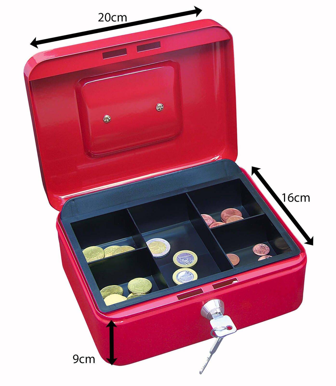 Die WEDO Geldkassette 145202X in Größe 2 ist in einem auffallenden Rot erhältlich und besticht durch ihre praktische Funktionalität. Der herausnehmbare Einsatz ermöglicht eine übersichtliche Aufbewahrung deiner Wertsachen, während die Maße von 20,0 x 16,0 x 9,0 cm eine kompakte und dennoch geräumige Aufbewahrungslösung bieten. Mit einem Tragegriff ausgestattet, kann die Kassette bequem transportiert werden. Der rote Farbton verleiht der Geldkassette ein modernes und ansprechendes Design. Als Produkt der renommierten Marke WEDO steht die Geldkassette für Qualität und Zuverlässigkeit. Die Bezeichnung des Herstellers als Größe 2 unterstreicht die passende Kapazität für den sicheren Transport und die Aufbewahrung unterschiedlicher Wertgegenstände. Diese Geldkassette erfüllt nicht nur ihren Zweck als sichere Aufbewahrungsmöglichkeit, sondern ist auch ein stilvolles Accessoire für den Alltag. Dank ihrer robusten Bauweise und dem praktischen Design eignet sich die WEDO Geldkassette 145202X ideal für zuhause, im Büro oder unterwegs. Schütze deine Wertsachen stilvoll und sicher mit dieser hochwertigen Geldkassette in Größe 2 von WEDO.Technische Daten