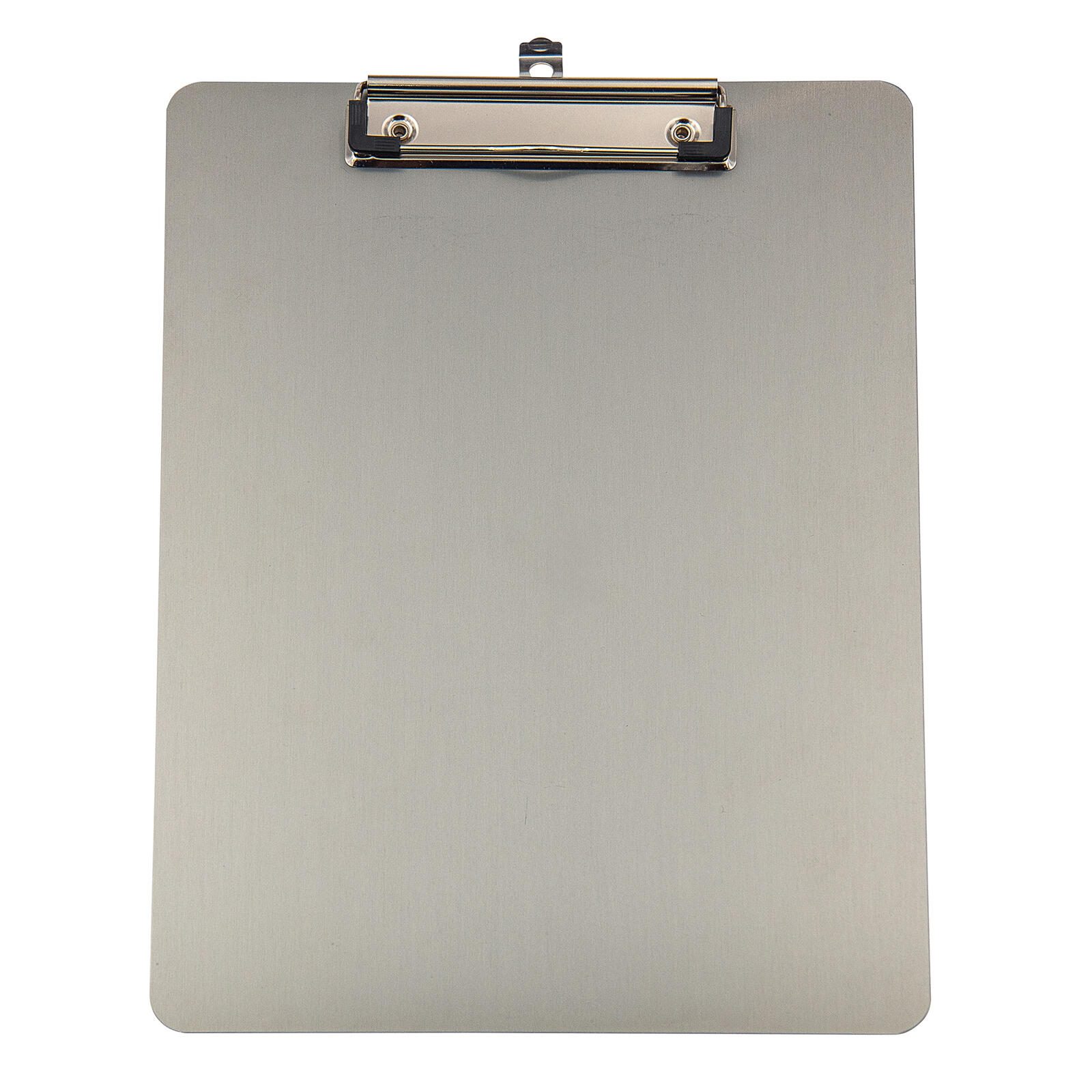 Die Klemme aus Metall ist silberfarben und befindet sich an der kurzen Seite des Klemmbretts. Sie ist so gestaltet, dass sie bis zu 50 Blatt Papier sicher hält. Dadurch ist das Klemmbrett besonders praktisch für den Einsatz im Büro, bei Besprechungen oder unterwegs. Die hochwertige Verarbeitung sorgt für eine lange Lebensdauer und eine zuverlässige Funktion.