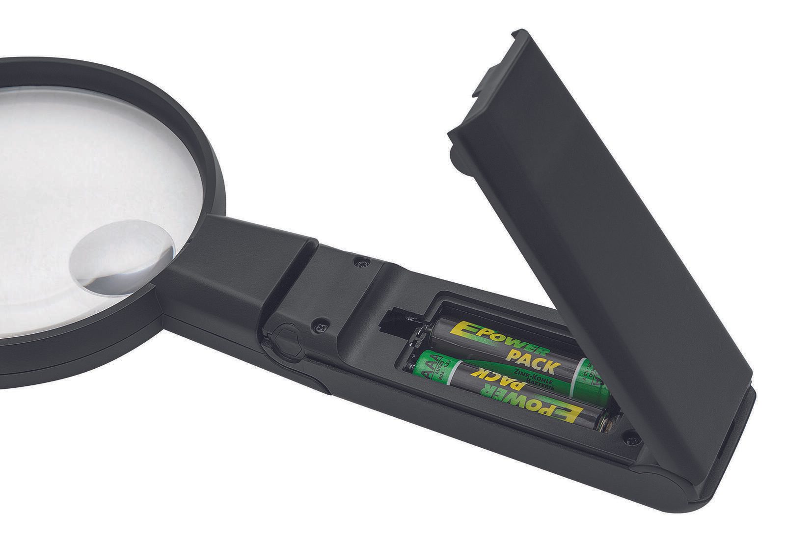 Die Lupe verfügt über einen ausklappbaren Standfuß, der für zusätzlichen Komfort und Stabilität sorgt. Mit einer Gesamtlänge von 22,3 cm ist sie handlich und leicht zu handhaben. Die Lieferung erfolgt inklusive 2 Stück 1,5 V AAA-Micro-Batterien, sodass du sofort mit dem Einsatz der Lupe beginnen kannst.