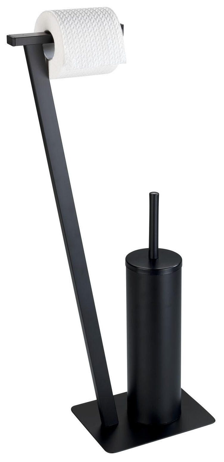 Die Stand WC-Garnitur Lirio schw. von Wenko überzeugt mit schwarz lackiertem Stahl in matter Ausführung, was deinem Badezimmer einen modernen und eleganten Touch verleiht. Die WC-Garnitur ist Teil der Lirio-Serie und besticht durch ihr zeitloses Design.