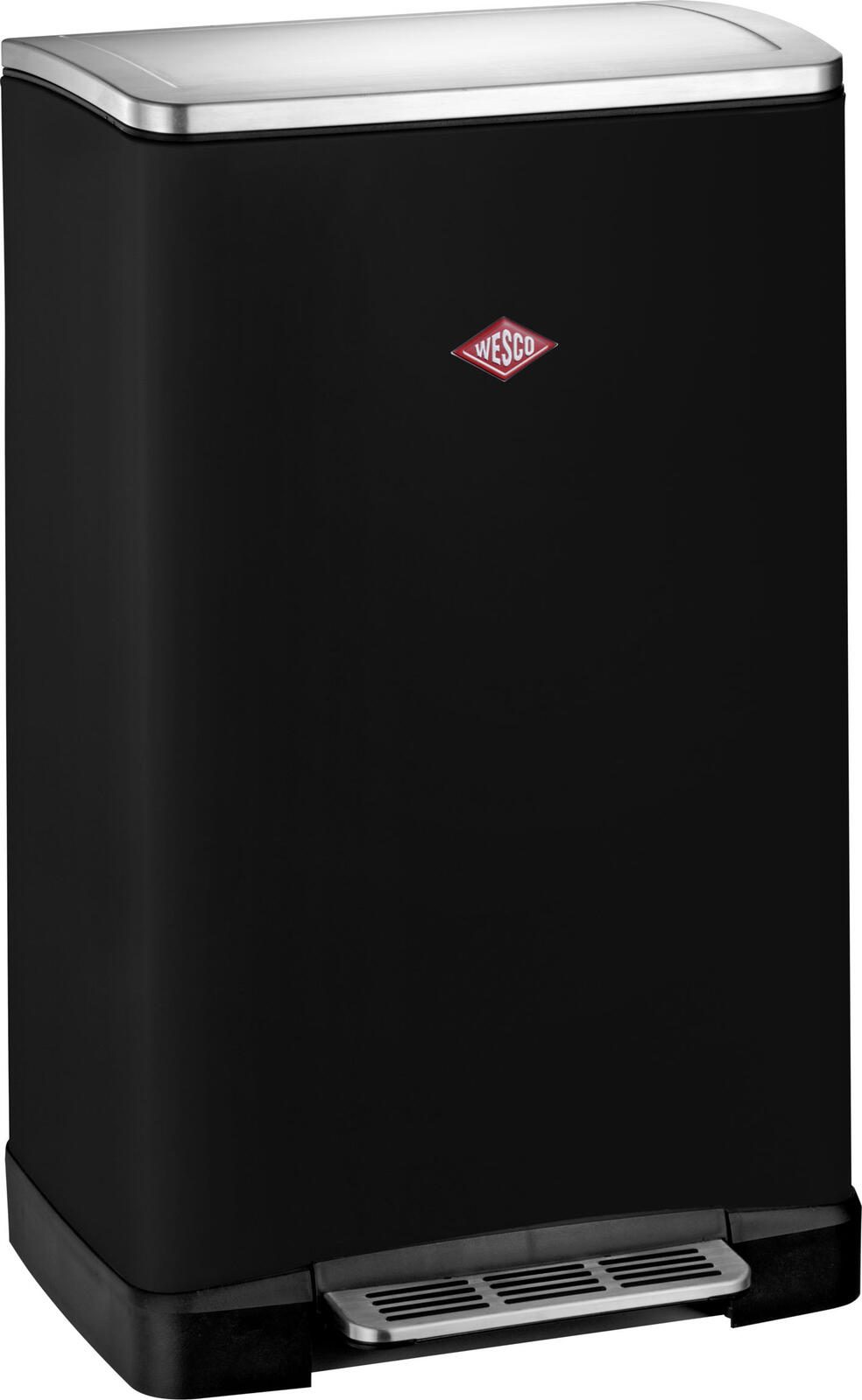 Der WESCO Mülleimer 40,0 l in elegantem Schwarz und mattierter Oberfläche vereint Funktionalität mit einem ansprechenden Design. Mit einem großzügigen Fassungsvermögen von 40,0 Litern ist dieser Mülleimer ideal für den Innenbereich geeignet und bietet ausreichend Platz für deine Abfälle. Der Tretmechanismus ermöglicht eine hygienische und bequeme Handhabung, sodass du den Deckel mühelos mit dem Fuß öffnen kannst, ohne die Hände benutzen zu müssen. Dank des gedämpften Klappdeckels schließt der Mülleimer sanft und leise, was ihn besonders benutzerfreundlich macht. Der Deckel besteht aus hochwertigem Edelstahl, der nicht nur optisch ansprechend ist, sondern auch langlebig und pflegeleicht. Das pulverbeschichtete Stahlblech des Mülleimers sorgt für zusätzliche Stabilität und Widerstandsfähigkeit, wodurch er sich perfekt für den täglichen Gebrauch eignet. Die schlichte, matte schwarze Farbe fügt sich harmonisch in jede Wohnumgebung ein und setzt gleichzeitig stilvolle Akzente. Ob in der Küche, im Büro oder im Badezimmer, der WESCO Mülleimer ist ein praktisches und ästhetisches Element, das deinen Raum aufwertet. Der Inneneimer erleichtert die Entsorgung und Reinigung, wodurch die Pflege des Mülleimers zum Kinderspiel wird. Mit dem WESCO Mülleimer entscheidest du dich für ein Produkt, das sowohl durch seine Funktionalität als auch durch sein Design überzeugt. Er ist die perfekte Lösung für alle, die Wert auf Qualität und Stil legen.Technische Daten