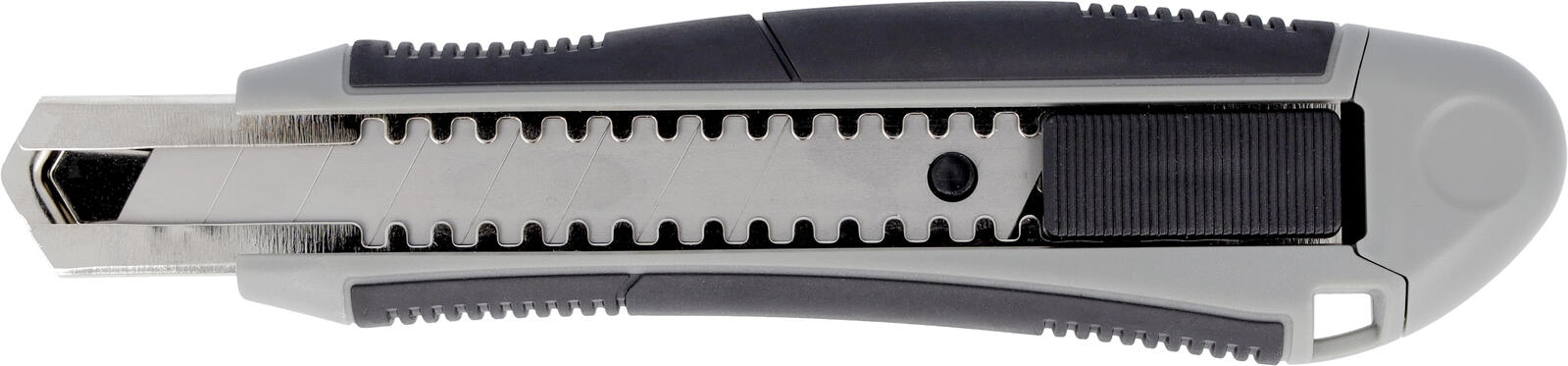 Der Griff des Cuttermessers besteht aus robustem Material, das eine angenehme Haptik und sicheren Halt gewährleistet. Die graue Farbgebung unterstreicht das professionelle Design und macht das Werkzeug zu einem zuverlässigen Begleiter im Arbeitsalltag. Im Lieferumfang sind zwei Ersatzklingen enthalten, sodass Sie jederzeit einsatzbereit bleiben und die Schneidleistung konstant hochhalten können.
