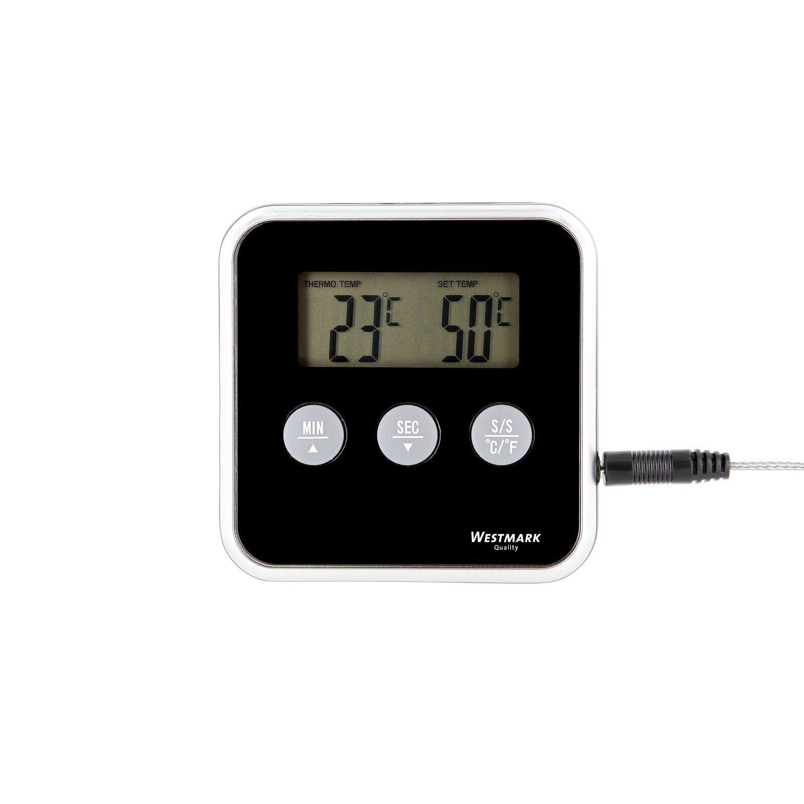 Das WESTMARK Fleischthermometer in Schwarz ist ein praktisches Werkzeug zum Messen der Kerntemperatur deines Fleisches. Sein elegantes Design in Schwarz macht es nicht nur zu einem nützlichen Küchenhelfer, sondern auch zu einem stylischen Accessoire in deiner Küche.