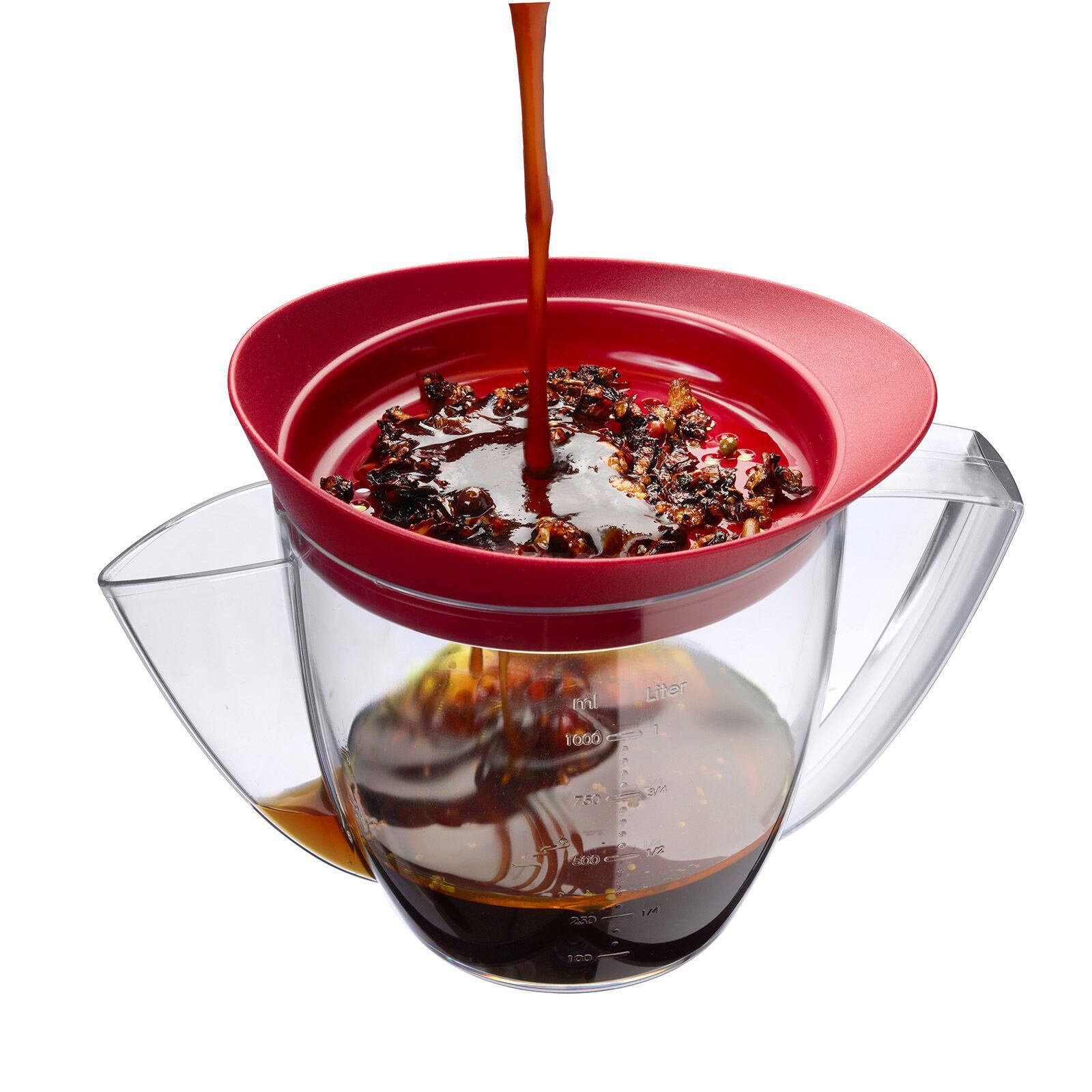 Das Design in transparenter Farbe mit roten Akzenten macht diese Fetttrennkanne nicht nur funktional, sondern auch optisch ansprechend. Hergestellt aus hochwertigem Kunststoff entspricht sie den Qualitätsstandards der Marke WESTMARK.