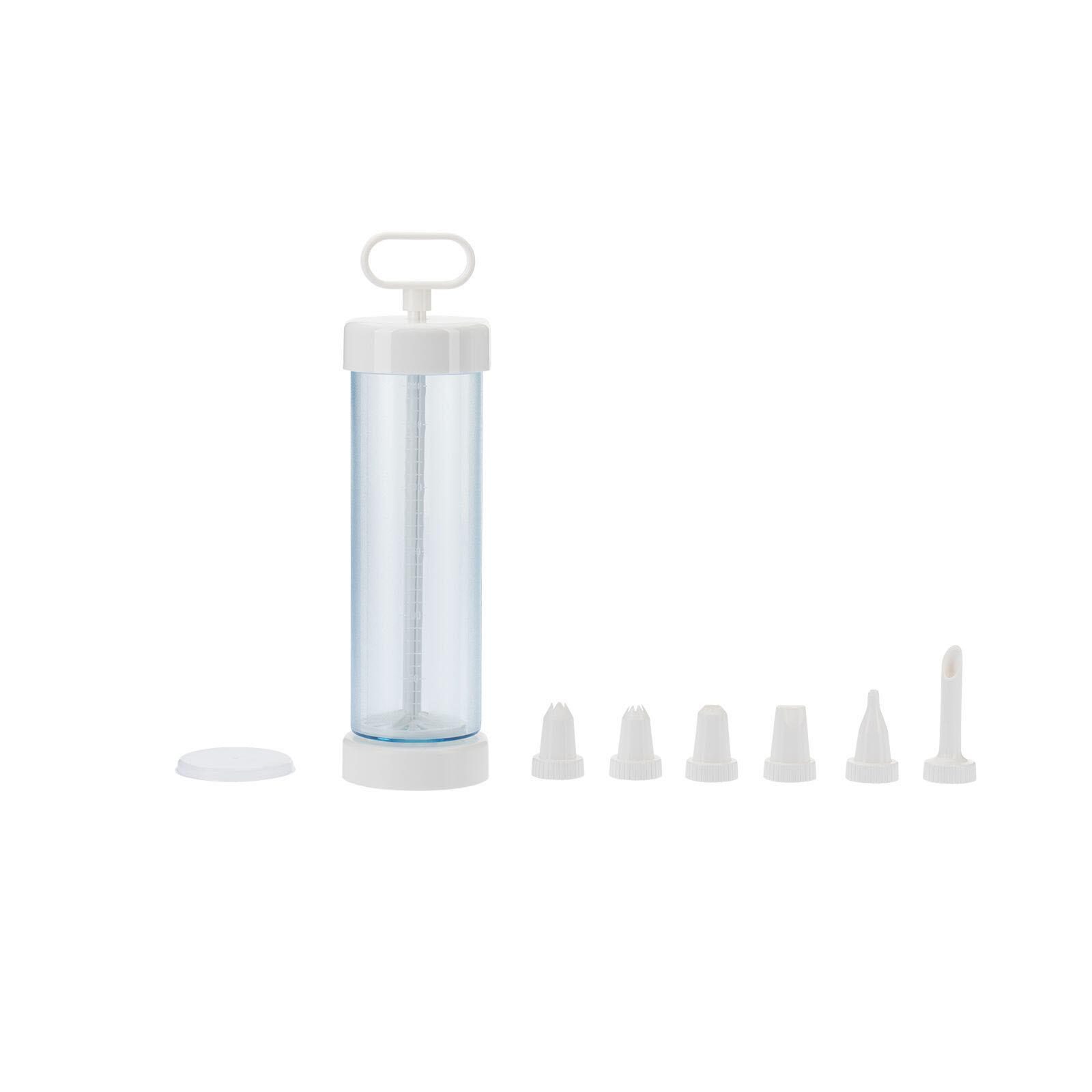 Die WESTMARK Garnierspritze in elegantem Weiß ist ein unverzichtbares Küchenwerkzeug für alle, die ihre Gerichte mit Raffinesse und Präzision verfeinern möchten. Mit einem großzügigen Fassungsvermögen von 280,0 ml ermöglicht sie es dir, verschiedene Flüssigkeiten, wie Saucen, Dressings oder Füllungen, mühelos und gleichmäßig zu dosieren. Das durchdachte Design dieser Garnierspritze sorgt dafür, dass du mit Leichtigkeit dekorative Akzente auf deinen Tellern setzen kannst, sei es bei festlichen Anlässen oder im Alltag. Die Garnierspritze besteht aus hochwertigem Kunststoff, was sie nicht nur leicht und handlich macht, sondern auch langlebig und pflegeleicht. Mit einer Höhe von 22,2 cm liegt sie gut in der Hand und ermöglicht eine präzise Kontrolle beim Garnieren. Die weiße Farbe verleiht der Spritze eine zeitlose Eleganz, die in jede Kücheneinrichtung passt und sie zu einem stilvollen Accessoire macht. Dank der robusten Bauweise ist die WESTMARK Garnierspritze ideal für den täglichen Gebrauch geeignet. Sie lässt sich problemlos reinigen und ist somit auch für den Einsatz in der Gastronomie prädestiniert. Egal, ob du ein Hobbykoch oder ein professioneller Küchenchef bist, dieses praktische Werkzeug wird dir helfen, deine kulinarischen Kreationen auf ein neues Level zu heben. Entdecke die Vielseitigkeit der WESTMARK Garnierspritze und bringe deine Kochkünste zum Strahlen. Mit diesem nützlichen Gadget wird jedes Gericht zum Hingucker, der nicht nur geschmacklich, sondern auch visuell überzeugt.Technische Daten