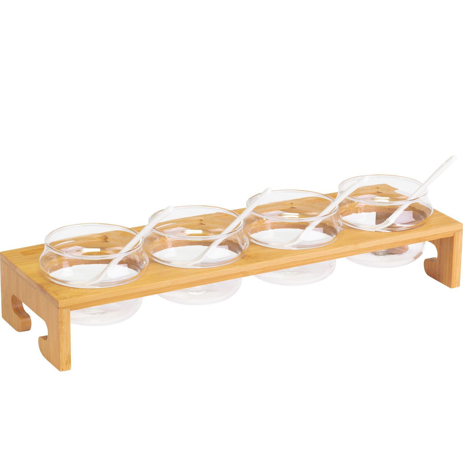 Die Westmark Marmeladenbar 13tlg. aus der Serie "Tapas + Friends" ist nicht nur praktisch, sondern auch stilvoll. Das Set besteht aus hochwertigem Glas und Bambus in einem ansprechenden braunen Farbton. Mit dieser Marmeladenbar kannst du dein Frühstück oder Brunch ganz einfach und elegant präsentieren.
