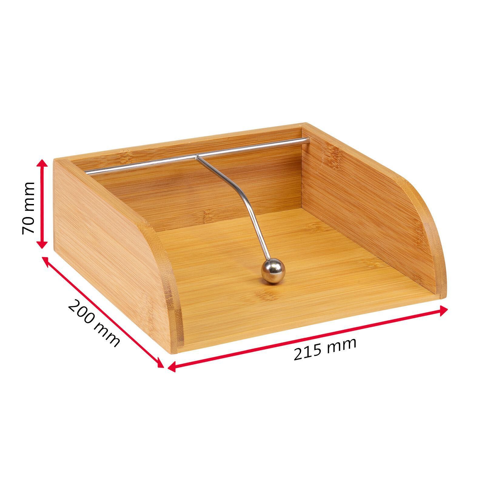 Der WESTMARK Tapas + Friends Serviettenhalter in elegantem Braun ist die perfekte Ergänzung für jeden Esstisch. Dieser stilvolle Serviettenhalter vereint Funktionalität und Ästhetik und sorgt dafür, dass deine Servietten stets ordentlich und griffbereit sind. Mit einer Höhe von 7 cm eignet sich dieser Halter ideal für handelsübliche Servietten in der Größe 33,0 x 33,0 cm mit 1/4 Falzung, sodass du immer die passende Größe zur Hand hast. Das Material aus hochwertigem Bambus und robustem Stahl verleiht dem Serviettenhalter nicht nur eine ansprechende Optik, sondern sorgt auch für Langlebigkeit und Stabilität. Die natürliche Farbgebung in Braun harmoniert perfekt mit verschiedenen Tischdekorationen und verleiht deinem Essbereich einen warmen, einladenden Charakter. Mit dem WESTMARK Tapas + Friends Serviettenhalter bringst du Ordnung auf den Tisch und sorgst gleichzeitig für einen stilvollen Akzent. Egal, ob bei einem festlichen Dinner, einem gemütlichen Brunch oder einem entspannten Abend mit Freunden – dieser Serviettenhalter ist ein praktisches und dekoratives Element, das deine Tischgestaltung bereichert. Die Serie Tapas + Friends steht für hochwertige Produkte, die das Genießen von Speisen und Getränken zu einem besonderen Erlebnis machen. Mit dem Serviettenhalter von WESTMARK entscheidest du dich für ein Produkt, das nicht nur funktional ist, sondern auch den Charme deiner Tischkultur unterstreicht. Vertraue auf die Qualität und das Design von WESTMARK und genieße jede Mahlzeit in vollen Zügen.Technische Daten