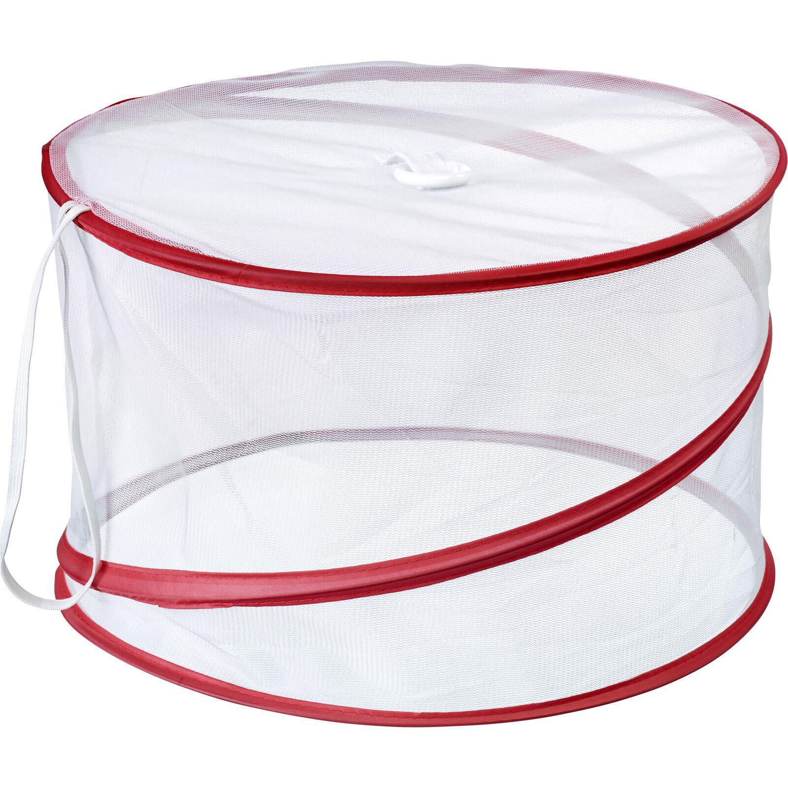 Die WESTMARK Fliegenhaube in der ansprechenden Farbkombination weiß/rot ist ein praktisches und stilvolles Accessoire für jede Küche. Diese hochwertige Speisehaube mit einem Durchmesser von 39 cm bietet optimalen Schutz für deine Speisen und sorgt dafür, dass unerwünschte Fliegen und Insekten ferngehalten werden. Das auffällige Design in klassischem Weiß mit roten Akzenten bringt nicht nur Funktionalität, sondern auch einen Hauch von Eleganz auf deinen Tisch. Hergestellt aus strapazierfähigem Polyester, überzeugt die WESTMARK Fliegenhaube durch ihre Langlebigkeit und einfache Handhabung. Das Material ist nicht nur robust, sondern auch leicht zu reinigen, was dir die Pflege erleichtert. Mit ihrer großzügigen Größe eignet sich die Haube ideal für verschiedene Gerichte, sei es beim Grillen im Freien oder beim Servieren von Speisen bei Familienfeiern und Festen. Die praktische Konstruktion der Fliegenhaube ermöglicht es dir, deine Speisen einfach abzudecken, ohne dass diese an Qualität oder Frische verlieren. Dank des durchsichtigen Materials kannst du die darunterliegenden Köstlichkeiten jederzeit im Blick behalten, was besonders nützlich ist, wenn du Gäste hast oder einfach den Überblick behalten möchtest. Die WESTMARK Fliegenhaube ist nicht nur funktional, sondern auch ein stilvolles Element, das in keiner Küche fehlen sollte. Egal, ob du sie für den täglichen Gebrauch oder für besondere Anlässe benötigst, diese Fliegenhaube ist die perfekte Wahl, um deine Speisen zu schützen und gleichzeitig eine ansprechende Präsentation zu gewährleisten. Mit dieser Fliegenhaube investierst du in ein Produkt, das sowohl praktisch als auch ästhetisch ansprechend ist.Technische Daten