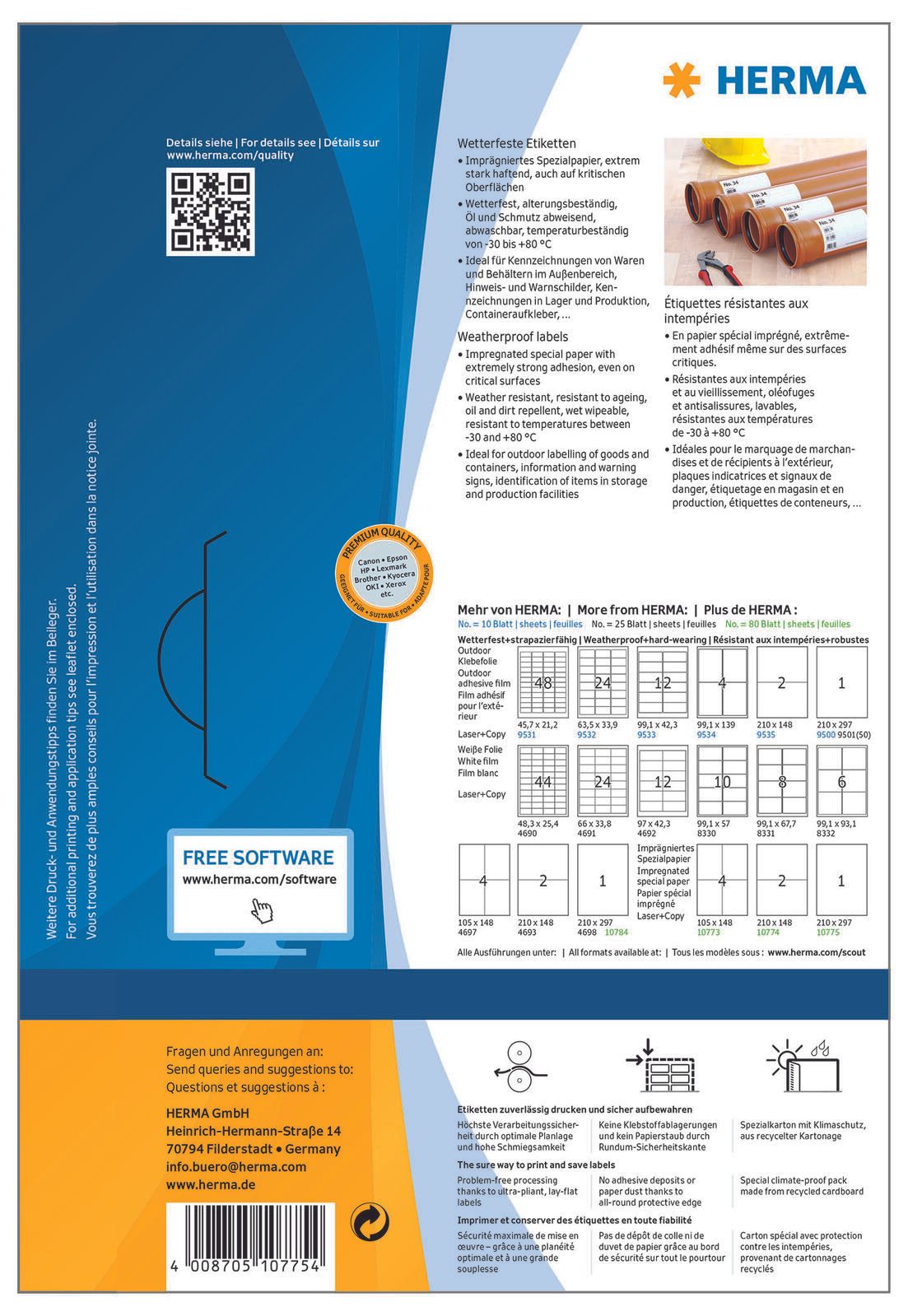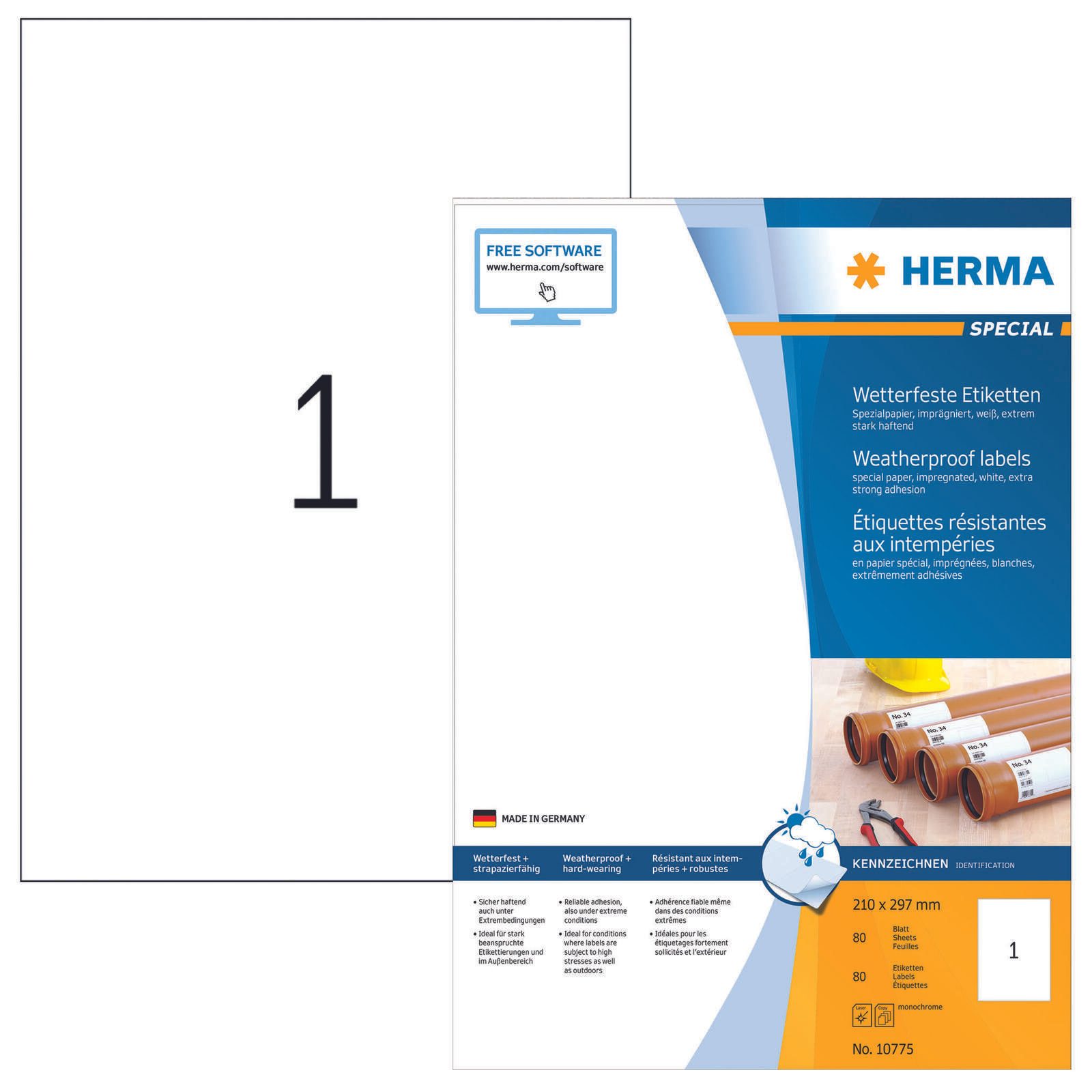 HERMA wetterfeste Etiketten 10775 weiß 210,0 x 297,0 mm
