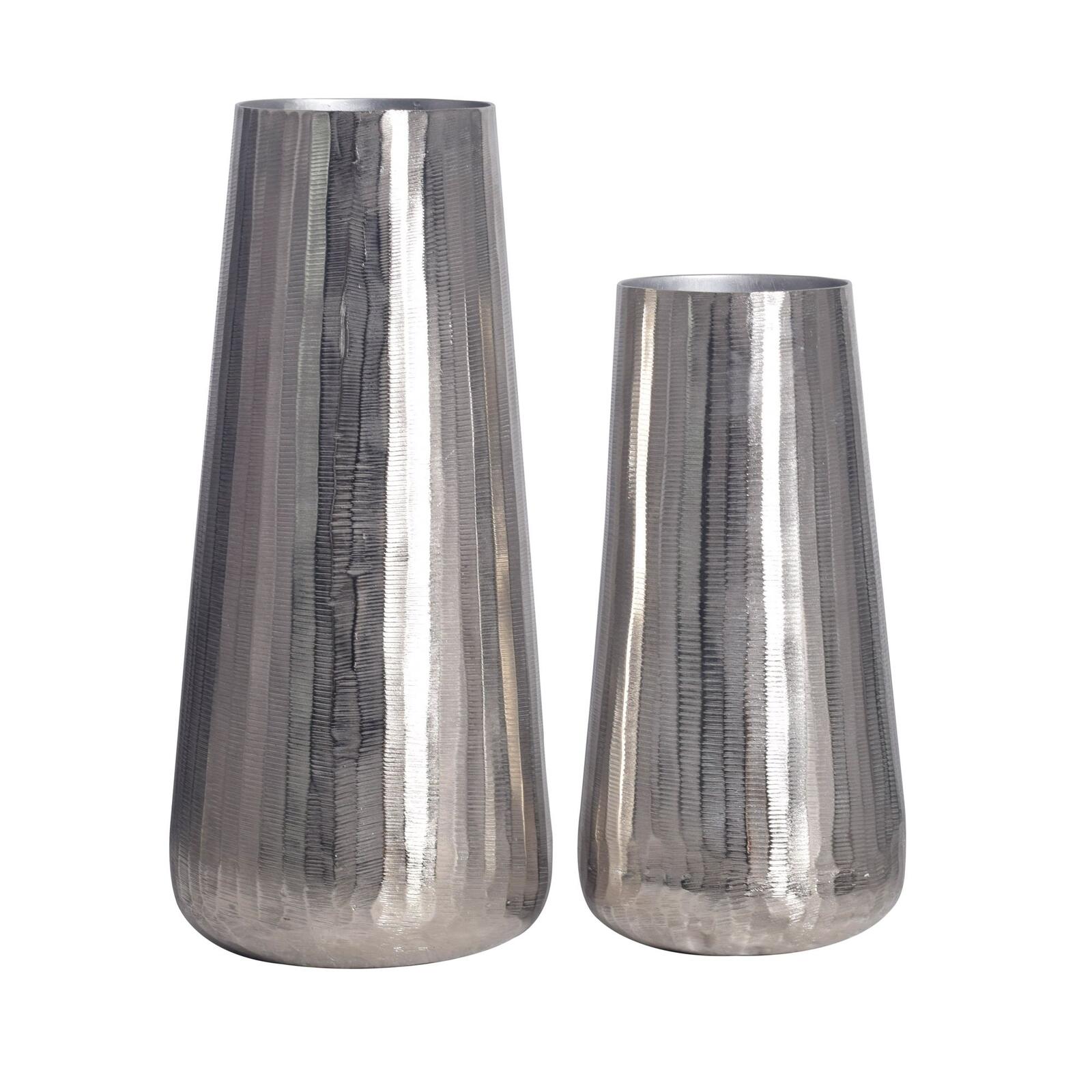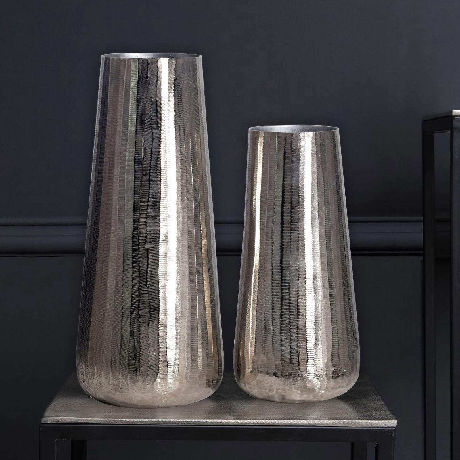 - Beide Dekovasen bestehen aus massivem Aluminium, welches silberfarben lackiert ist.