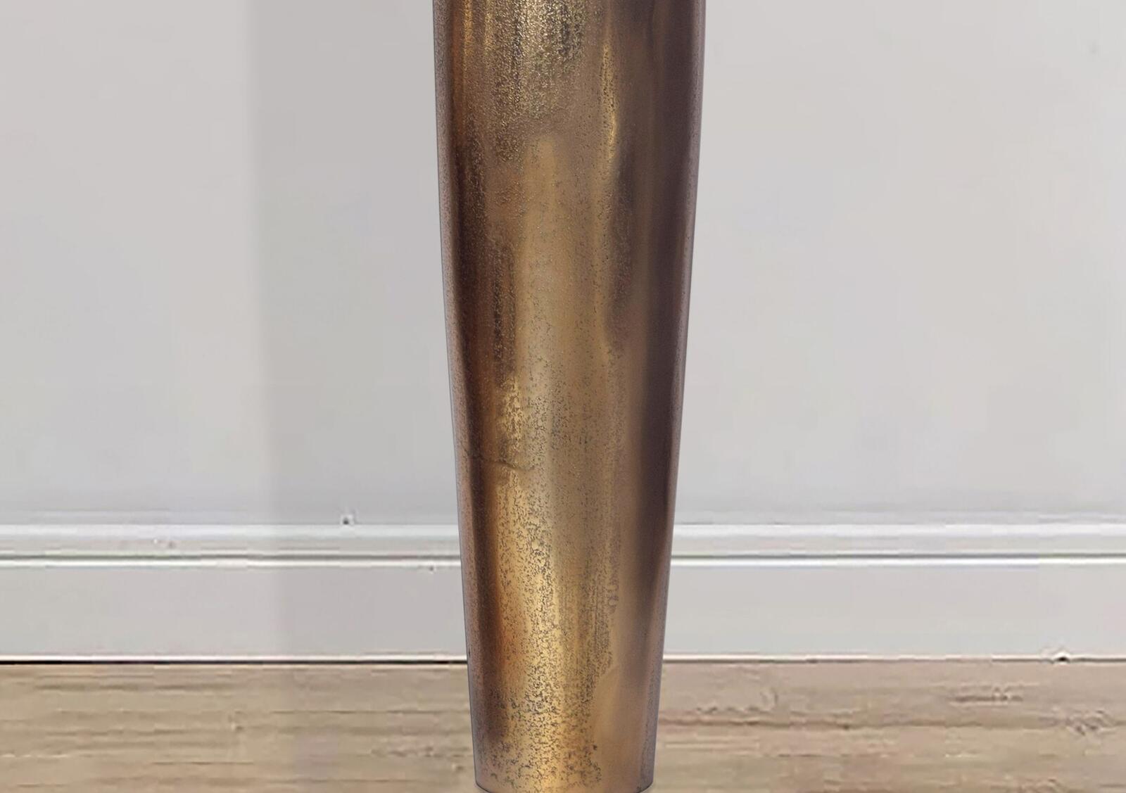 - Die Dekovase besteht aus massivem Aluminium im Raw-Finish, welches goldfarben lackiert ist.