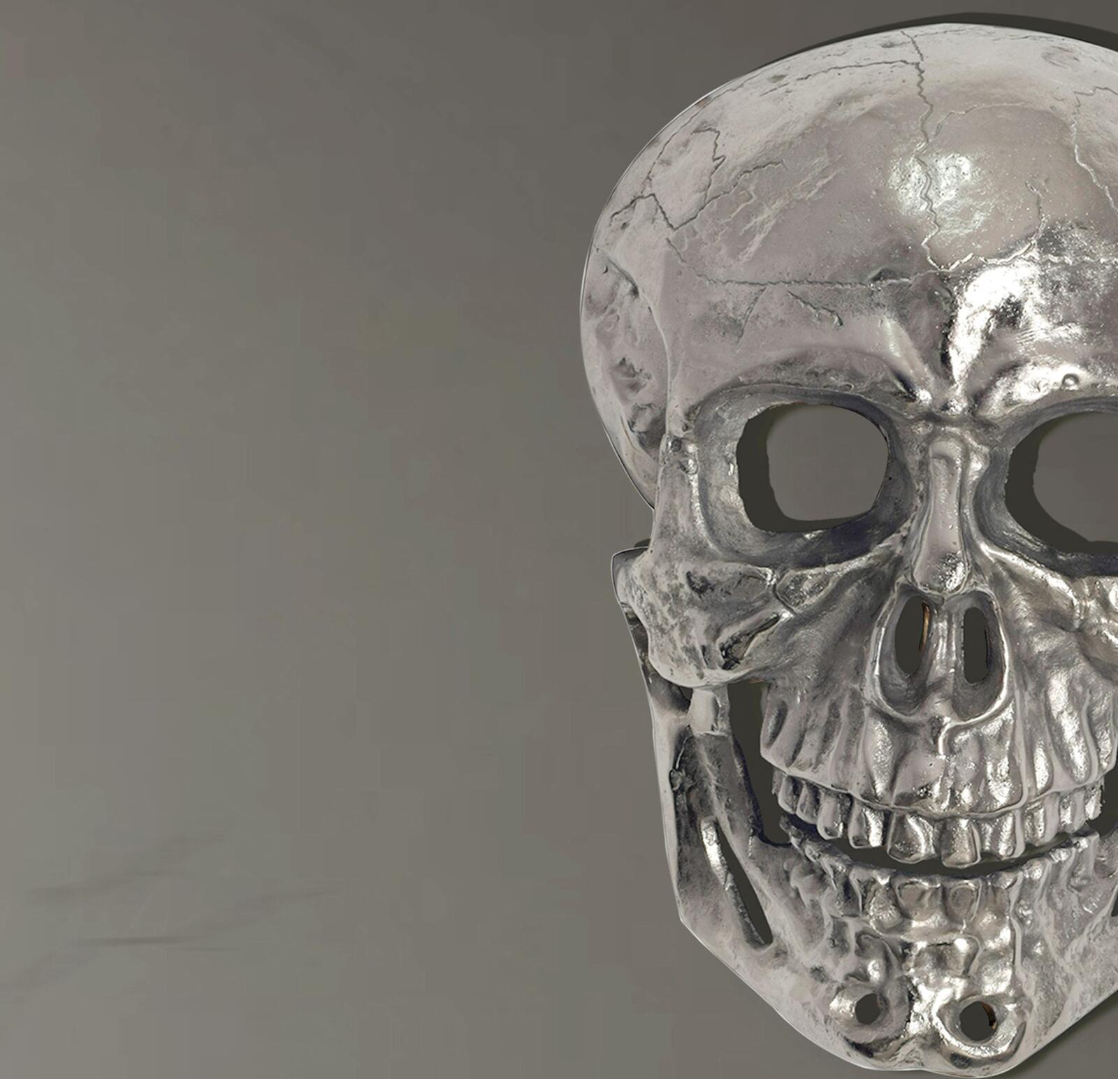 - Eine Totenkopf-Dekofigur ohne Dekoration. Montagematerial für die Wandbefestigung ist nicht im Lieferumfang enthalten, da dieses von der Wandbeschaffenheit abhängig ist.